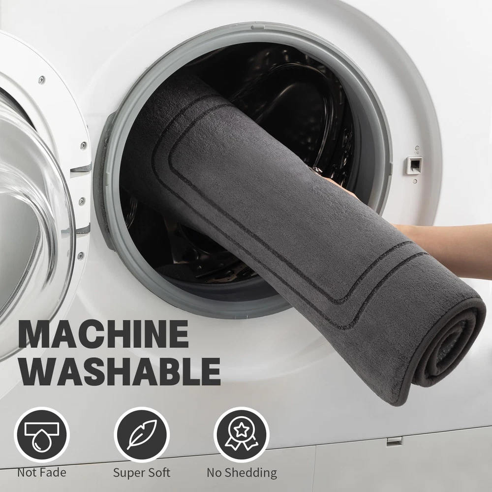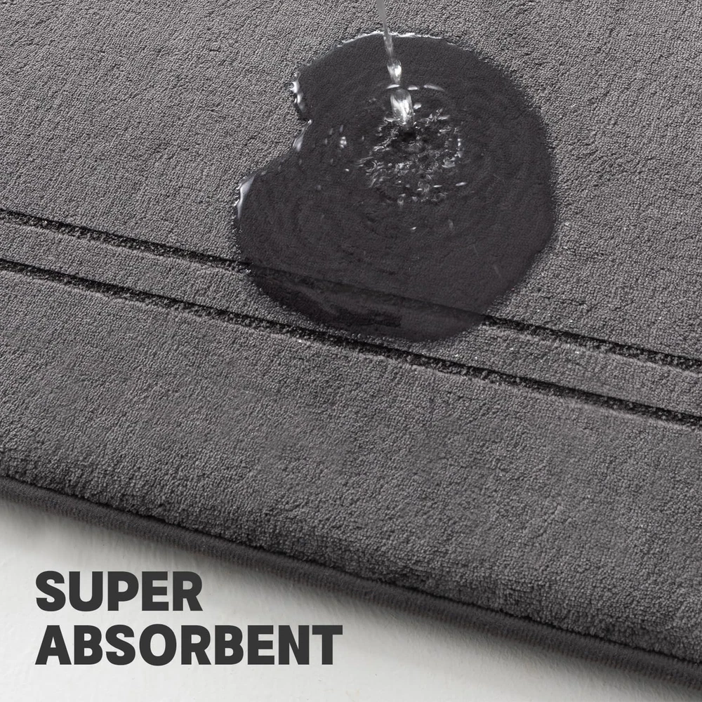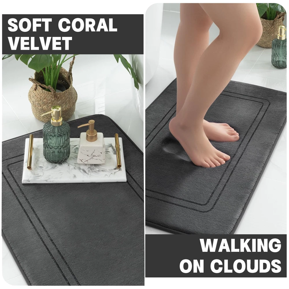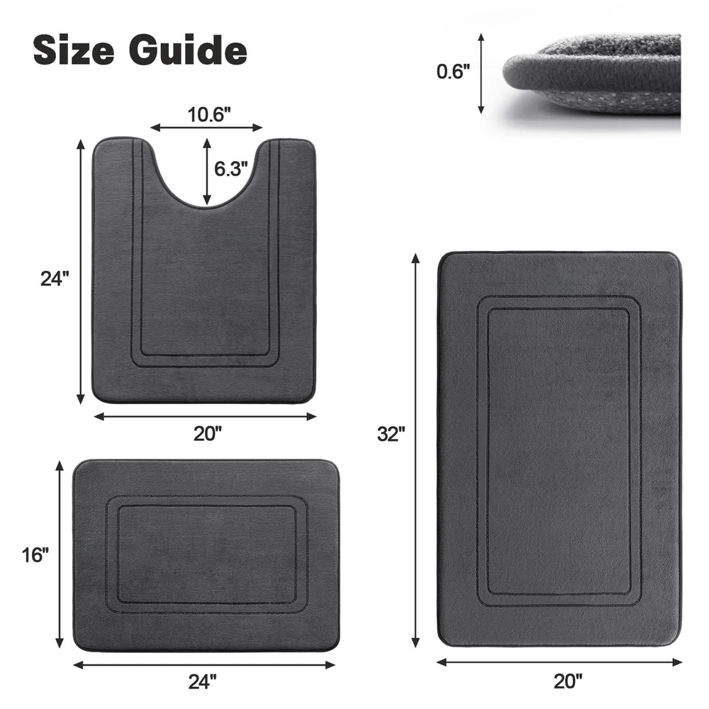 【Bath Mat Set】Bathroom rug 3 pieces included large bath rug 32' x 20' and 24' x 17' long Mat, 24' x 20' U-Shaped counter rug, With different colors to choose from, you can easily find a rug that coordinates with your décor, meets all the needs of a family's bathroom, ensuite, bedroom, vanity, etc., and is a good choice for bathroom decoration. 【Super Soft And Comfort 】Linear design brings a different touch to the soles of the feet.Soft and better constructed memory foam bathroom mat, thickened memory foam padding relieves foot pressure and fatigue.Let you enjoy the comfort of standing on the clouds! 【Super Non-Slip Backing】The bottom of the floor mat is made of a new drip dots molding technology process.It can better protect your family from shifting, slipping and sliding of the bath rug.Soft surface fleece soothes feet and protects toes from cold floors. 【Super Absorbent Bath Mat】This special backing material is hygroscopic and properly insulating, absorbing water quickly and drying quickly, helps save your floors from dripping water while you're stepping out of the bath, shower, spa, or getting ready by the sink. 【Machine Washable Bath Rug】bathroom rugs are easy to clean.Machine wash in cold water with a neutral detergent,tumble dry low or hang to dry, will not fade, lint or distort after repeated machine washing, air dry well before use. Do not iron or bleach, wash cold with neutral detergent.