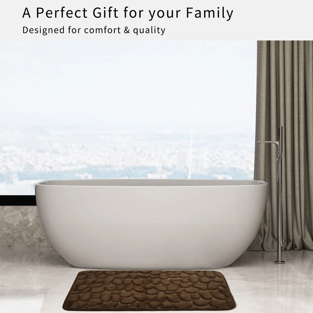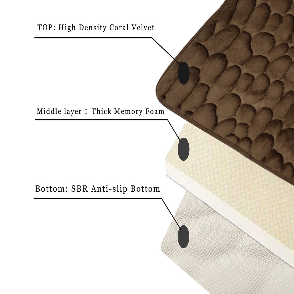 Detail description: Its detailed data is as follows Size: unfolded 17"x 24" Thickness: 0.6" Material: The surface is high-density coral velvet.The interlayer is thick memory foam.The bottom is the SBR non-slip bottom. The bottom is environmentally friendly and the water barrier is impermeable. The surface is three-dimensional pebbles, increasing the comfort of the foot. Please Choose Gropk Bathroom Carpet mat and take the clouds home now. SUPER SOFT & COMFORTABLE- Gropk bathroom mats are high density coral velvet.The interlayer is thick memory foam that soothes tired feet and protects your toes from the cold floor. FAST WATER-ABSORBENT- Gropk bath rugs with soft coral velvet microfiber layer can quickly absorb moisture, make your feet dry immediately, and the water do not stay on the surface of the bath mat, helping to keep your floors clean and dry. ANTI-SLIP & DURABLE-The bottom is a new material SBR non-slip bottom.It is made of high frequency embossing technique.Which is much stronger and durable for long lasting use, unlike other brands where the backing tends to wear and peel off after a number of washes. EASY TO CLEAN- Gropk bathroom mat can be machine-washable, just put the mat into the washing machine with cold water in a gentle cycle.The color of the bath mats will not fade. The Gropk Bathroom mat can be widely used in the bathroom, kitchen, living room, laundry room, hallway, bedroom, balcony, etc.Choose Gropk Bathroom Carpet mat and take the clouds home.