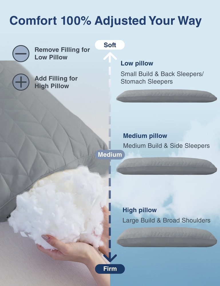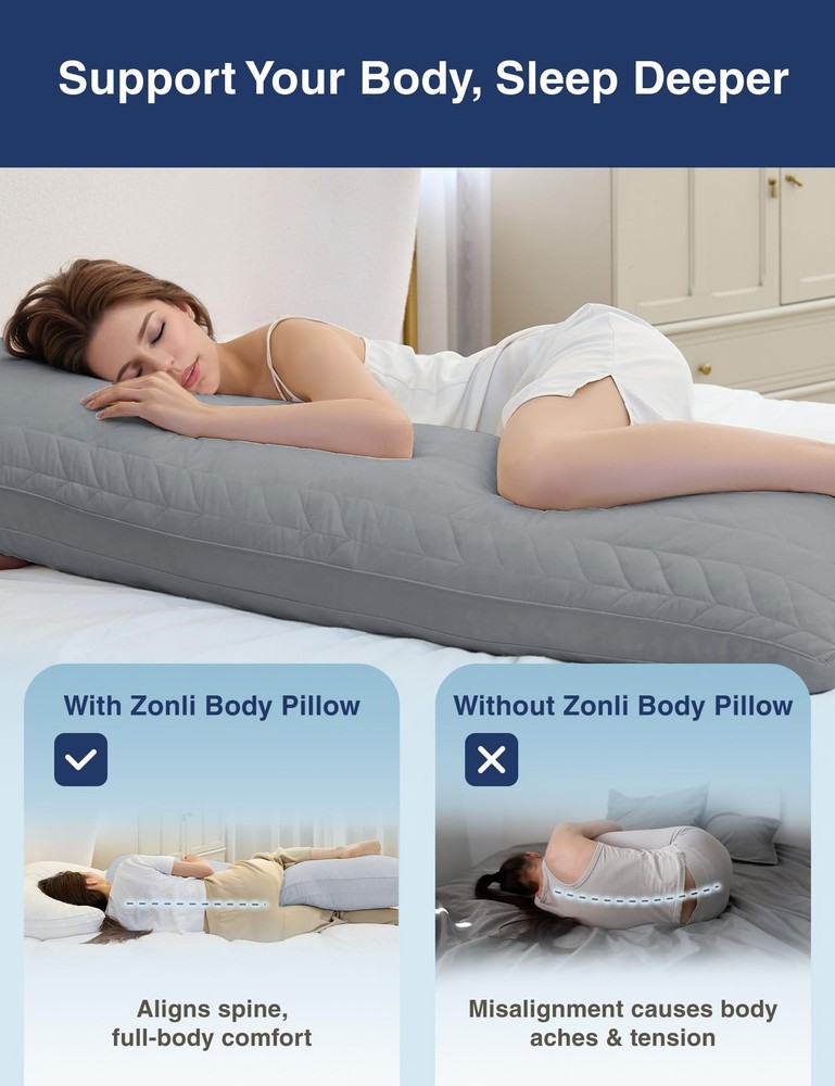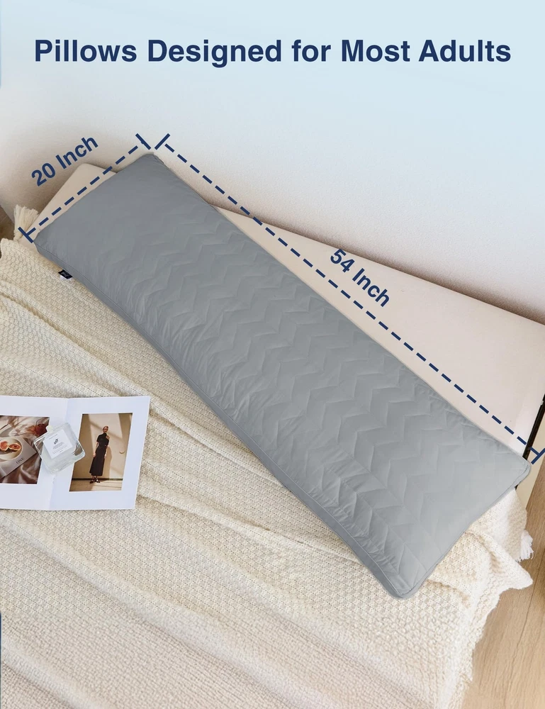 The Full Body Pillow is the ultimate companion for a restful night's sleep and relaxation. Filled with premium memory foam, it conforms to your body’s natural curves, offering full support for your back, neck, shoulders, hips, and knees. Perfect for side sleepers, pregnant women, and anyone seeking extra support, this pillow alleviates pressure points, providing relief and ensuring a rejuvenating, pain-free sleep.One standout feature is its adjustable firmness. The pillow has a hidden zipper, allowing you to easily add or remove foam to customize the height and firmness to suit your preferences. Whether you prefer a softer, plush feel or a firmer, more structured pillow, pillow adapts to provide tailored comfort for uninterrupted, restorative sleep. The pillow cover is made from ultra-soft faux rabbit fur microfiber on one side, offering a plush, silky-smooth touch that’s gentle on the skin. The reverse side is crafted from crystal velvet, which is soft, durable, and skin-friendly. Both fabrics are OEKO-TEX certified, meaning they’re free from harmful chemicals, making the pillow safe for all skin types. The Full Body Pillow is not just for sleeping. It provides versatile support for reading, lounging, nursing, or relaxing after a long day, alleviating discomfort in the back, abdomen, hips, and knees. Ideal for pregnant women or those with chronic pain, it supports a wide range of activities. Maintaining the pillow is easy with its removable, machine-washable cover. It’s hypoallergenic and can be washed on a gentle cycle and tumble-dried on low heat, ensuring a fresh and soft pillow every time. As a thoughtful gift, the Full Body Pillow is perfect for friends, family, or coworkers who appreciate comfort and relaxation. Its luxurious design and versatile support make it a cherished gift for any occasion. Ultimate Comfort & Support: Large Body Pillow is filled with a blend of premium shredded memory foam and PP cotton to provide the perfect balance of softness and support for a truly restful night's sleep. It cradles your neck, shoulders and back, relieving pressure and discomfort, and effortlessly conforms to your body's natural curves for a deeper rest. Quilted and reinforced design: Hug Pillow features a unique wheat ear-shaped quilting technique . The tight stitching increases fill density and helps keep the inner materials evenly distributed, preventing shifting over time. This thoughtful design extends the pillow’s lifespan while maintaining breathability. Skin-Friendly and Breathable:long pillows are crafted from soft, skin-friendly microfiber for a gentle touch and lasting comfort., which can keep you dry and comfortable while you're sleeping.The height and softness of the pillow can be adjusted by the zipper at the top to meet your diverse needs. Easy Maintenance: Pillow insert can be removed. Please use mild detergent. Pillows are vacuum-packed in order to reduce energy loss during transportation. Upon receipt, gently pat and fluff the pillow, then let it rest for 24 hours to achieve the perfect state. More Than Just a Pillow:At 20x54 inches, this versatile full-body pillow is ideal for supine, side-lying and prone sleepers .Great for lounging in bed, binge-watching on the sofa, or curling up with a book—it’s your go-to companion for relaxation anytime, anywhere.