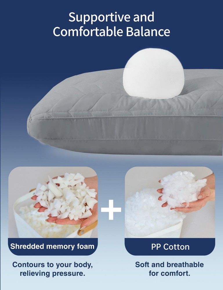 Vaverto Queen Gel Memory Foam Pillow Ventilated Orthopedic Support for Beds