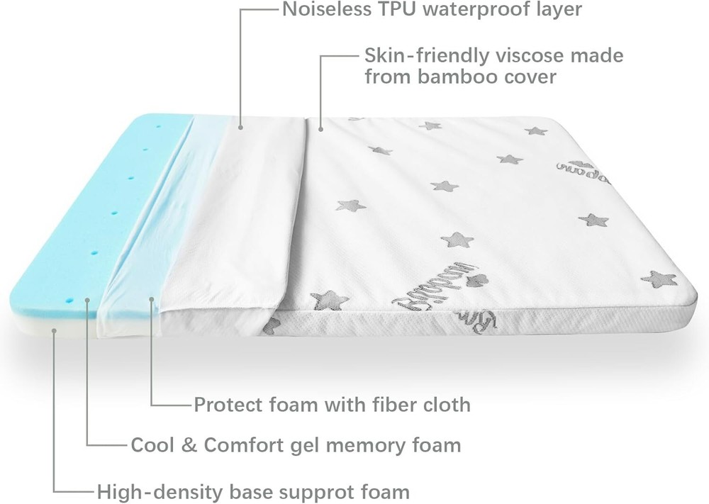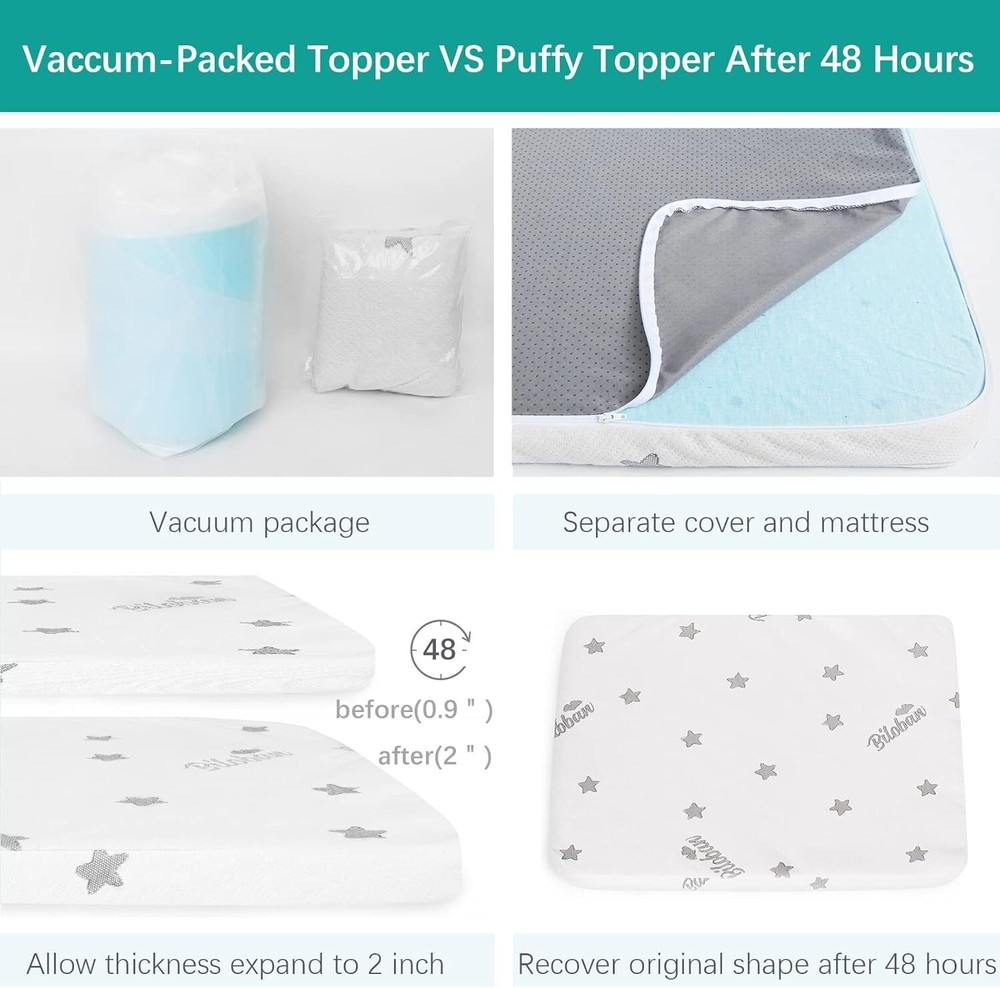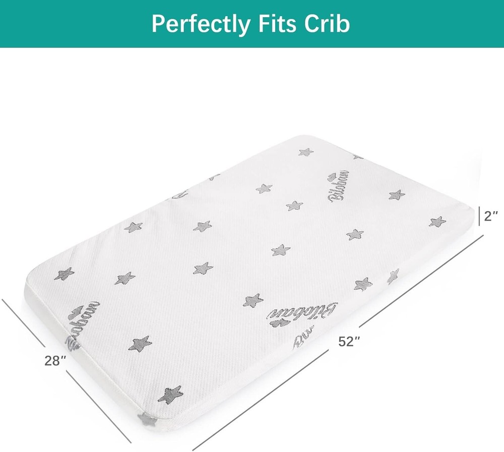 Product description Cozy & Soft Surface: Smooth jacquard surface, naturally, breathable cover is skin-friendly for baby and measures 52 x 27 inch with rounded corners to make sure crib mattress can perfectly universal fit. And Its intended for toddlers above two years old. Breathable & Cozy Dual Sided Mattress: Integrated with gel foam and high-density support foam, the firmer flat and even surface promotes proper support for infant, slightly softer foam side provides maximum comfort for toddler. The crib mattress topper is engineered to optimize air flow and reduce trapped body heat, giving your baby a cool and comfortable sleep environment, make your baby sleep more comfortably. Non-slip Bottom Structure: The non-slip gripping dots ensure the mattress stays in place, It's best protection at daycare time even if your little one is rolling or playing on crib mattress. Since the product can be also used without a crib as well for the perfect baby sleeping mat. Removable and Waterproof Zippered Cover: Removable soft OEKO-TEX standard 100 certified cover with smooth surface and waterproof layer is made of food-grade TPU that won't make a crinkly plastic noise when your baby moves, and against everyday liquids and stains. It's extremely soft to the touch for your baby, you never have to worry about accidents and keeping your mattress clean. Biloban's Life-time Guarantee: Quality you can trust, if the toddler bed mattress topper does not meet your needs for any reason, replacement or money back, no questions asked. After you received the product, please allow 48 to 72 hours for topper to expand. Handling & Delivery We offer Free Shipping on all orders! Your order will be shipped within 2 working days after receiving payment. In an unlikely event that your order is lost or damaged in transit, it is eligible for full refund or replacement. We ship to continental US address ONLY, we are unable to ship to PO Boxes or APO/FPO addresses. Return Policy If you are not satisfied when you receive your item, please contact us for a replacement or money back. If the item is defective, we will send you a replacement without any extra charge, or offer a full refund after we receive the defective item, but return shipping should be paid by buyer. All items qualify for returns within 30 days of receipt. Returned packages must be the original package. Contact us We will respond emails within 24 hours, within 36 hours on weekend.