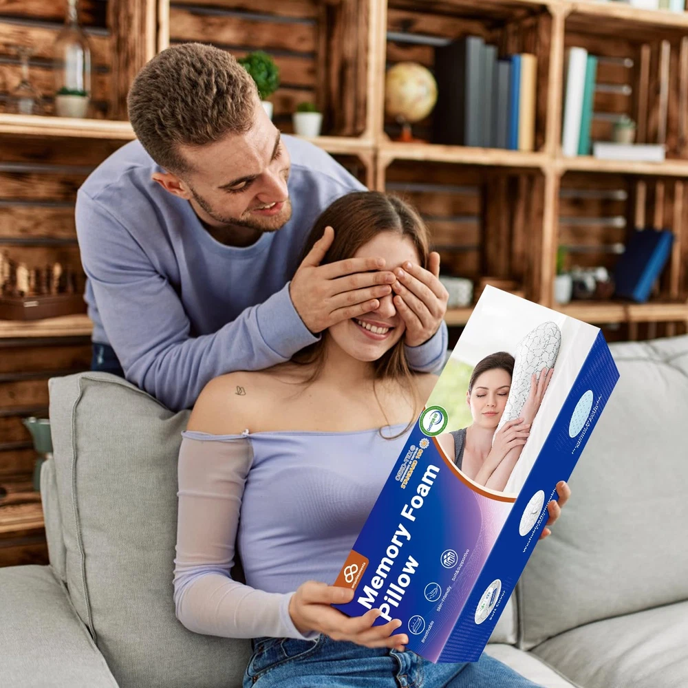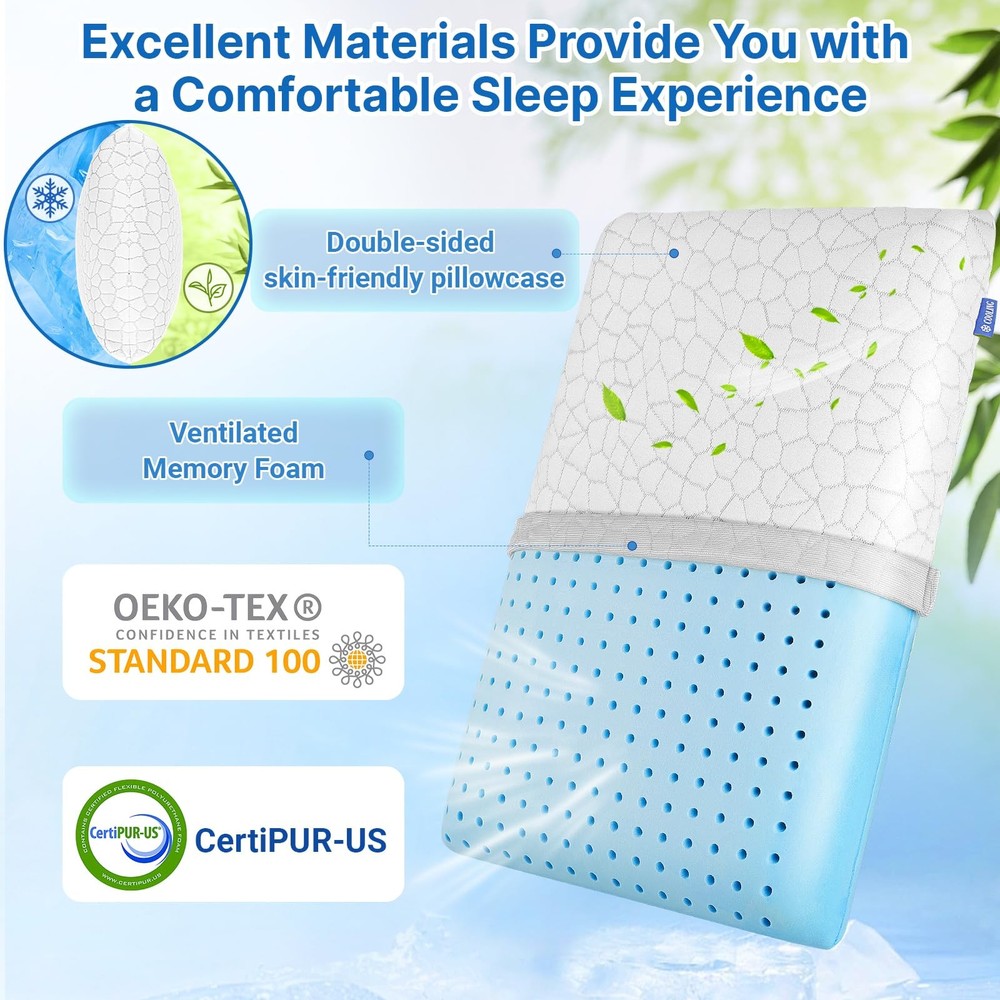Memory Foam Pillows, Bed Pillow, Bed Pillow for Side,Back and Stomach Sleepers,Neck Pillow for Sleeping with Removable and Machine Washable Cover, Standard Size (1 Pack) [Standard Size] The bed pillow measures 26.2" * 16.3" * 5.3 " and the pillow comes in a beautiful colorful box. Our bed pillow is absolutely an ideal present for family and friends. It is also an essential item for bedrooms, hotels, dormitories, and college dorm rooms [Premium Quality] memory foam pillow is crafted from high-quality slow-rebound memory foam, with the core certified by CertiPUR-US and the pillowcase certified by OEKO-TEX Standard 100, ensuring exceptional comfort and safety for your sleep. Additionally, the zipper is sturdy, adding to the overall longevity and practicality of the pillow [Dual-Sided Comfort] One side of the pillowcase is made of breathable fabric, while the other side is soft and skin friendly, providing you with a warm and comfortable sleeping experience [Easy Maintenance] The pillowcase is equipped with a wide-opening zipper, making it easier to remove and wash. Simply unzip the cover, remove the pillowcase, and toss it into the washing machine for a quick and effortless refresh. Please note that the cooling pillow core is not recommended for direct washing [Comfort-focused Design] The memory foam pillow core features a perforated design that enhances heat dissipation. memory foam pillows provide excellent support for your head, neck, and shoulders, making them suitable for side sleepers, back sleepers, and stomach sleepers