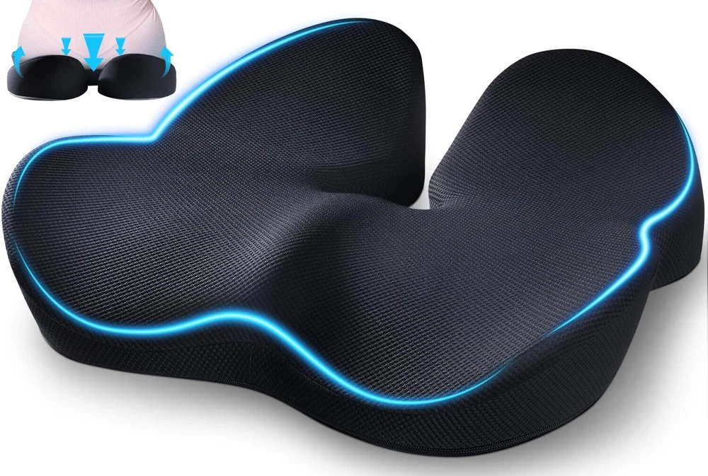 🏅【Patented Ergonomic Design for Comfort】Our memory foam seat cushion is patented design which can enhance your posture and cradle your thighs and hips. The seat cushion will provide comfort during long periods of sitting. 🏅【Premium Memory Foam】JUUWAN seat cushion for desk chair is made of high-density memory foam and features breathable black mesh cloth. The office chair cushion is certified by CertiPUR-US and approved by Oeko-Tex. 🏅【Relieves Pain and Improves Posture】The ergonomic shape of our cushion provides support and comfort while reducing pressure on your lower back, waist, and hips. The seat cushion for car also helps improve your posture, reducing the risk of pain and discomfort. 🏅【Versatile and Adaptable Design】The chair cushion is versatile and fits most chairs, making it perfect for use as a car seat cushion, desk chair cushion, sciatica pain relief cushion, gaming chair cushion, or chair cushion for back pain. 🏅【Easy to Clean and Non-Slip】The office chair cushion is designed with removable zippered cover, so it is easy to be cleaned. The bottom of the seat cushion for tailbone pain relief is made of non-slip material ,which can make the cushion stay in your chair without of moving around.