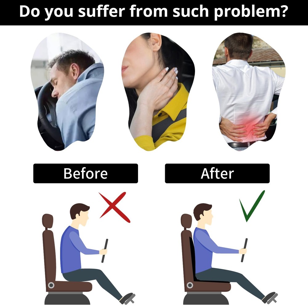 Truck Seat Cushion for Truck Driver Back Pain 【Premium Memory Foam】Our Truck Seat Cushion 2 Pcs Set is made of 100% pure memory foam, soft and firm, uses your own body heat to adapt to your curves, ergonomic "U" shaped hollow design for superior comfort, effectively support the coccyx, relieve the hip pressure caused by sitting for long periods. 【Moderate Density Slow-Rebound Memory Foam】The truck back support cushion & seat cushion pad is made of 50D density memory foam, which is not too soft or too hard. It cushions and supports the body with moderate softness, and evenly absorbs the pressure from the neck, back and lumbar area, driver’s lumbar support pillow providing relax to who suffers driving fatigue. 【Especially Deisigned for Truck】Sitting straighter helps reduce chronic body aches, which get in the way of an active lifestyle and affect your mood.Our waist and seat cushions are designed specifically for truck drivers to reduce fatigue and discomfort during your journey. Make it the best choice for all truck drivers. 【2-PIECE SET for better support】The seat cushion supports the hips and tailbone, and the lumbar pillow supports the back. These cushions work together to provide more support and comfort than a seat cushion or a lumbar cushion alone ever could.TIPS:Your cushions arrives compressed,please wait for 24-48 hours for fully expand. 【Breathable & Removable Cover】The breathable & removable 3D mesh pillow cover allows air to circulate freely helping you to keep the back and neck cool and dry while sitting or driving. ergonomic car seat back support pillow With the zipper design, it's easy to disassemble and wash, great for repeated use. Truck driver Seat Cushion Cover is machine washable