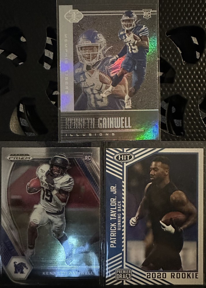 6 cards pictured included: 1. 2024 Leaf Draft On the Come Prospect Antwann Hill Jr. #OC-2. 2. 2024 Bowman Chrome U Rookie Seth Henigan #162. 3. 2018 Donruss Rookie Phenom Prizm Relic Anthony Miller #RP-AM. 4. 2021 Chronicles DP Illusions Rookie Kenneth Gainwell #121. 5. 2021 Prizm DP Rookie Kenneth Gainwell #113. 6. 2020 Sage Draft Rookie Patrick Taylor Jr. #78.