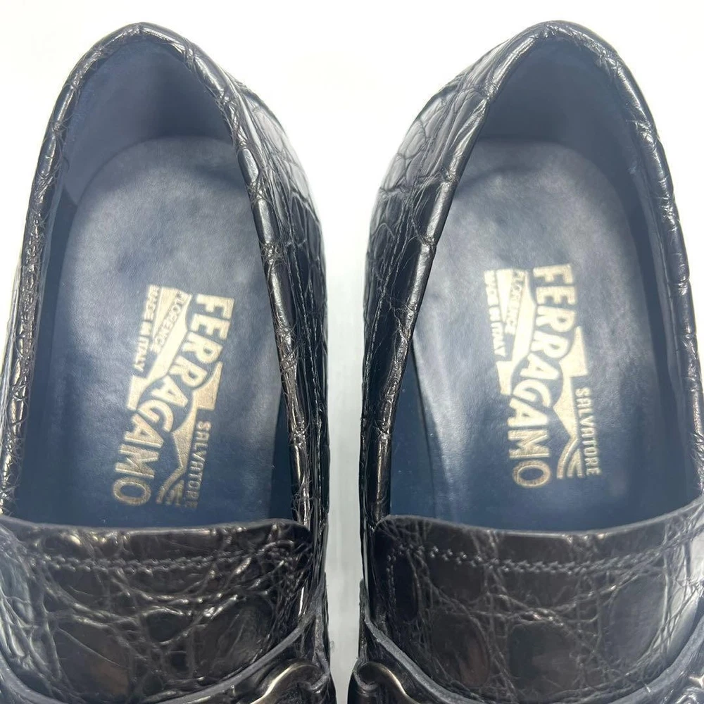 Men's Salvatore Ferragamo Black Crocodile Loafers Size 7.5US