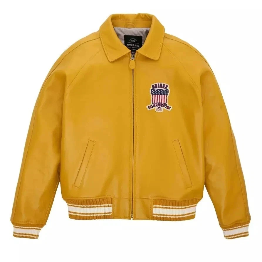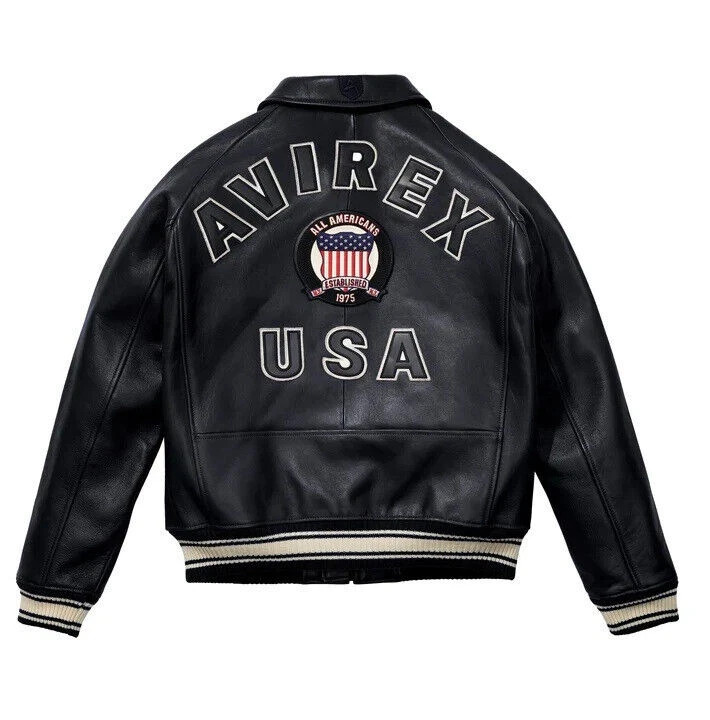 Note: PLEASE Share Your Size and Colour in Message. Thankyou Size: PLEASE READ THE SIZE GUIDE CAREFULLY. Please see the size chart image. Description: Men Avirex All colour Real Bomber American Flight Jacket Handmade designed, professionally cut and stitching throughout as per international standards. 100% genuine sheep skin leather. Soft , light weight, durable and comfortable. Key features: Premium Outer Shell: Made from 100% genuine Sheepskin leather, ensuring exceptional durability and a refined appearance. Comfortable Inner Lining: Features imported Cheer fabric for enhanced comfort and breath ability. Utility Pockets: Includes two exterior and two interior pockets for ample storage and convenience. Stylish Sleeves: Rib-knit cuffs provide a snug fit and a touch of classic bomber charm. Size Range: XS to 2XL (custom sizing available) Care Instructions: Dry clean only • Add this beautifully designed Real leather jacket to your winter attire.