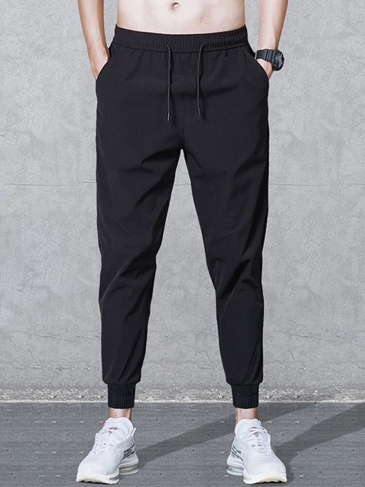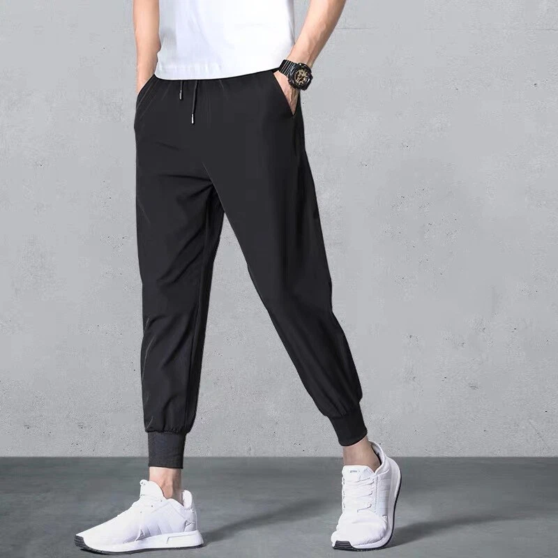 Inseam: 38 in Front Type: Flat Front Features: Breathable, Comfort Fit: Regular MPN: Does not apply Rise: Mid (10-12 in) Brand: Unbranded Department: Men Material: Polyester Garment Care: Machine Washable Occasion: Casual Closure: Drawstring Type: Pants Style: Harem Vintage: No Size Type: Regular Pattern: Solid Leg Style: Straight