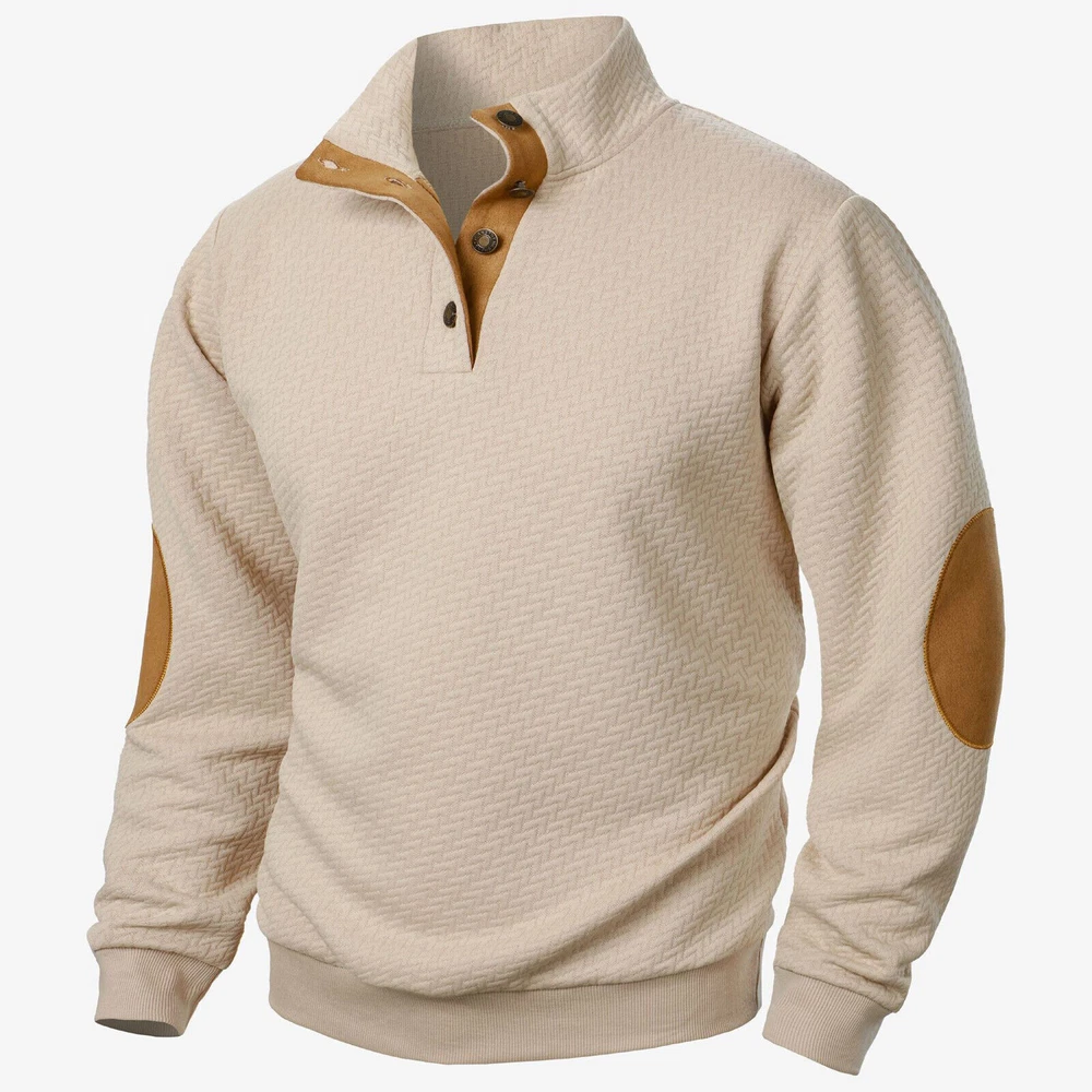 Men Casual Sweatshirts Button Stand Collar Long Sleeve Tactical Hoodies Pullover