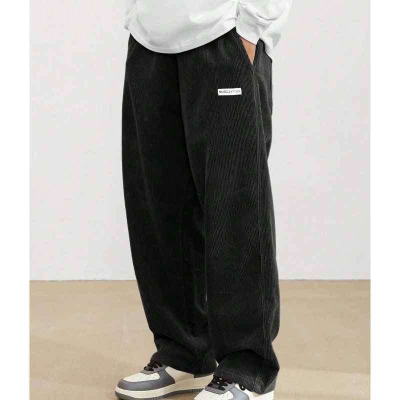 Men Corduroy Casual Sweatpants Baggy Drawstring Workout Joggers Trousers