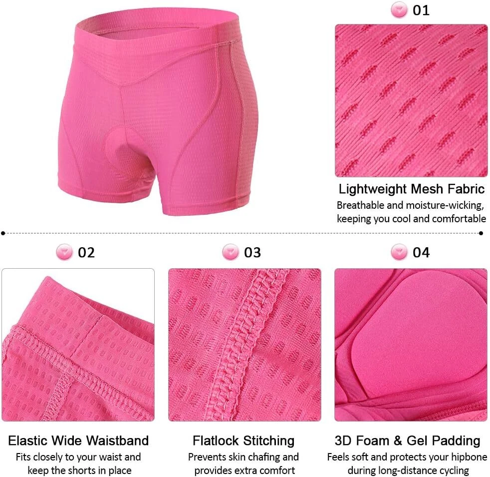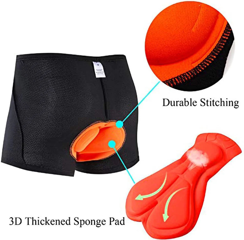 Product Description Features: 1. LIGHTWEIGHT AND BREATHABLE - This 3D padded underwear shorts are made of polyester,which effectively absorb moisture and release sweat from the skin and keeps you dry and cool. Keeping skin away from sweat irritation, to prevent you from any discomfort. 2. This biking underwear is highly durable. This bike shorts does not irritate the skin, it is designed with skin-friendly materials. They will fit your curves spectacularly, also move with your body in the cycling motion, almost like second skin. 3. 3D THICKENED PROTECTION PAD - Our biking underwear shorts are designed with an ultra durable, premium, stitched 3D foam padding to fit nicely around your hips without deforming and slipping and to protects your hipbone from injuries during long-distance cycling. 4. SIZE TIPS: Please check size chart in our picture (Try reference with weight/height).If you have doubt for size, please send message to us.There are many kind of cycling clothes in our Amazon store, please focus on our brand. 5. Designed For women Cyclist: Suitable for casual biking or professional cycling, MTB, bikes, Indoor cycling. Specification: Material: Polyester,Spandex Color: Black&Orange;Rosered&Orange Weight: 150g Tag size: S,M, L, XL, XL, 2XL, 3XL Please choose your size: S=24-26" / M=26-28" / L=28-30" / XL=30-32" / 2XL=32-34'' / 3XL=34-36" This Outdoor Cycling Shorts lets your cycling comfort Even you are sweaty, the Cycling Shorts will do not adhere to your skin This Cycling Shorts is great for riders Package Included: 1 x Cycling Bicycle Pants