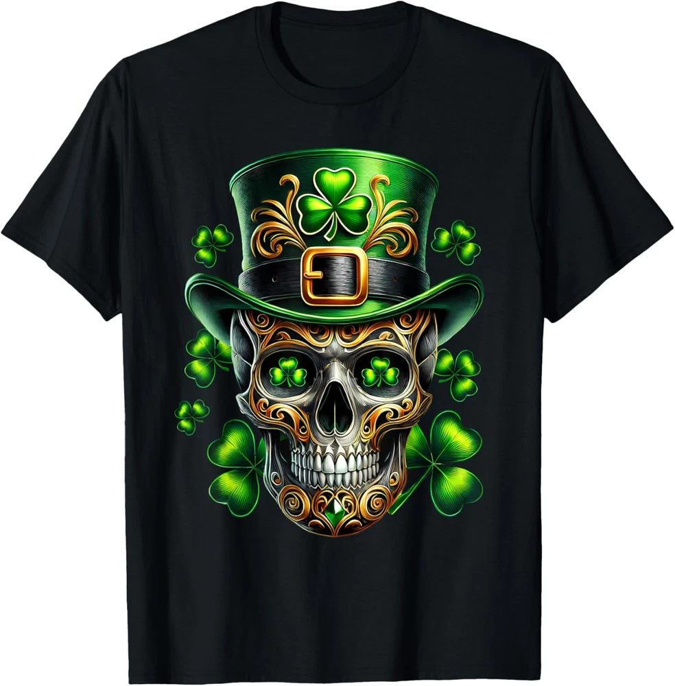 Men Irish Skull Shamrock Leprechaun Ireland St Patricks Day T Shirt