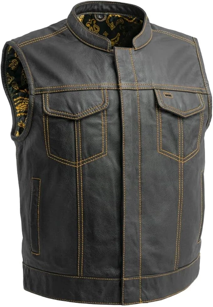 Men's 100% Genuine Leather Vest - Vintage Denim Hunt Club Vest Classic Native American Motorcycles Biker Vest Western Cowboy Vest Waistcoat ⭐⭐ AWESOME FEATURES ⭐⭐ ✓ 100% Genuine leather ✓ Zipper & Button Closure ✓ Sleeveless Design ✓ Front pockets ✓ Side pockets ✓ Concealed gun pockets ✓ Versatile Wear ✓ Occasional Wear ✓ Snap buttons ✓ Along Zipper YKK ✓ Fashion-able Look ✓ Handmade Work ✓ Inside Lining Material: - Polyester ✓ Unique Design ✓ Comfortable & Cool Style ✓ Strong Thread Stitched ✓ Original gift for friends and family ✓ Suitable for Various Occasions ✓ Suitable for all Mens ✓ Inside Lining Material: - Polyester ✓ Regular sizes from XS to 5XL (see chart size) ✓ We do not compromise on quality and comfort. Often Called: cowboy vest for men, motorcycles vest, mens vintage waistcoat, leather waistcoat vests, native american waistcoat vest for men, Hunter vest, Western leather vest, Men leather vest waistcoat, leather rider vest, club hunt vest, Denim style vest, leather lined vest ⭐⭐ Size of Measurements⭐⭐ Please check our size chart carefully for your vest measurements. The size vest of waistcoat is prepared as per standard measurements. choose the right size based on the CHEST and LENGTH. ⭐⭐ Custom Orders⭐⭐ If you have your own design of Western Vest or Waistcoat, please let us know we can manufacture any type of provided western Vest style. ⭐⭐ Shipping Policy⭐⭐ We Offer Fast Shipping Services at Cheap Prices. We ship to your eBay address. Please make sure your eBay address is correct before you pay. Item will be shipped within Handling days when we received payment. Delivery time depends on destination and other factors. · Standard Shipping Takes 7-12 Days · DHL Shipping Takes 5-7 Days ⭐⭐ International Buyer Please Note⭐⭐ Import duties, taxes and charges are not included in the item price or shipping charges. These charges are buyers responsibility. we will try our best to reduce the risk of the custom duties. ⭐⭐ Payment Policy⭐⭐ 1. We accept all eBay Payment Methods 2. All major credit cards are accepted. 3. Payment must be clear within Handling time of product. ⭐⭐ Return Policy⭐⭐ We have 30 Days of Return Policy. If you would like to return or exchange this, please return this in the same condition within 30 days of buy, once it will receive by us, money will be refunded. [Contacting us before opening the request is very appreciated] [Let us know with the defect or discrepancy of Jacket within 7 days of receiving] [Letting us know with the feedback of return/exchange upon return is appreciated]. Thanks.