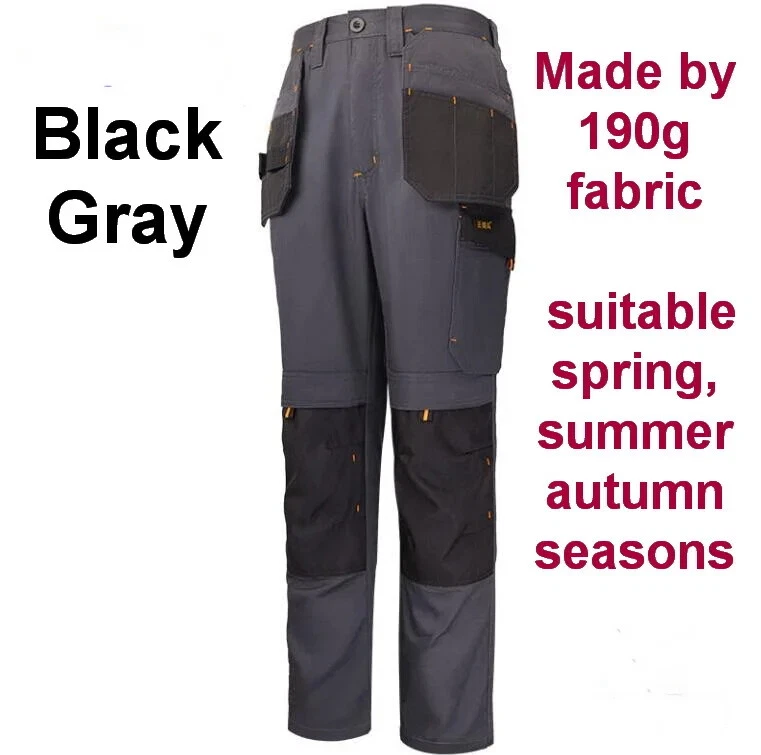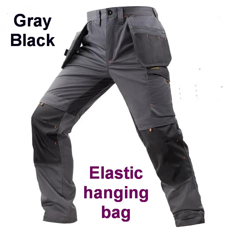 Size M Waist 76-86 cm,Suitable for body weight of 50-60 kg Size L Waist 81-91 cm,Suitable for body weight of 60-70 kg Size XL Waist 86-96 cm,Suitable for body weight of 70-80 kg Size XXL Waist 91-101 cm,Suitable for body weight of 80-90 kg Size 3XL Waist 96-106 cm,Suitable for body weight of 90-100 kg New addition of spring/summer slim workwear pants Newly added upgraded gray black multi pocket water, electricity, automotive, mechanical, and repair workers' hanging bag work pants Hanging bag design, hanging various tools Add 4 outer knee pockets Built in knee pads that can be freely cut and placed in the knee pocket to protect the knees Available colors and styles to choose from