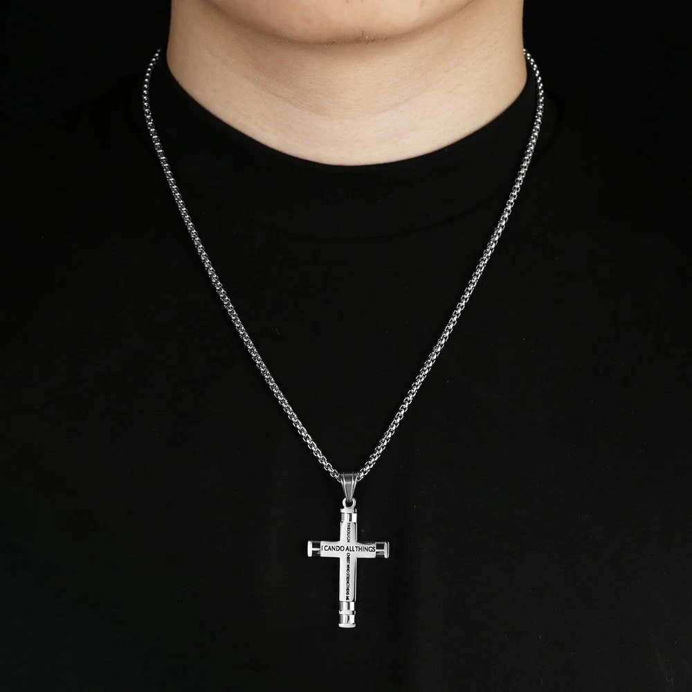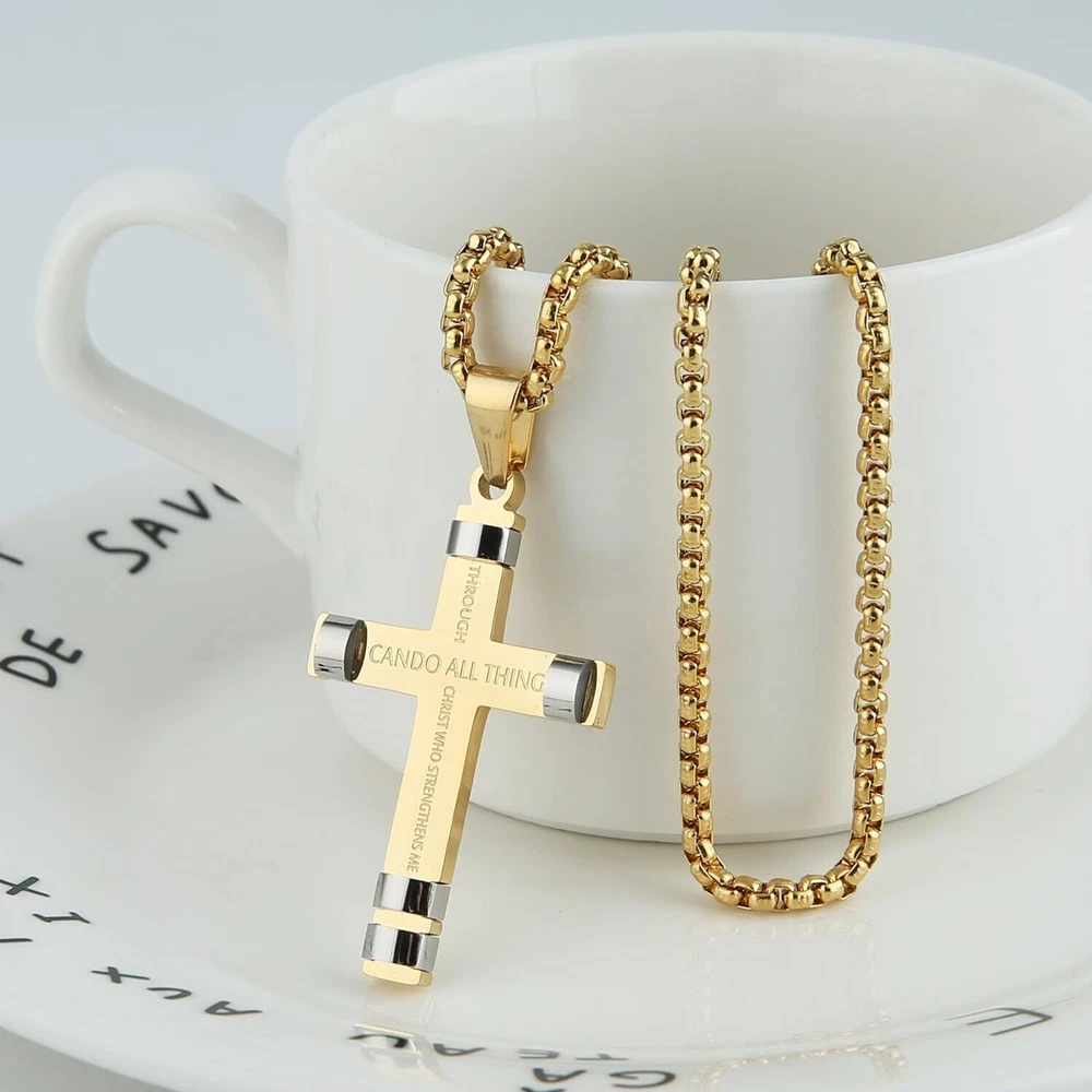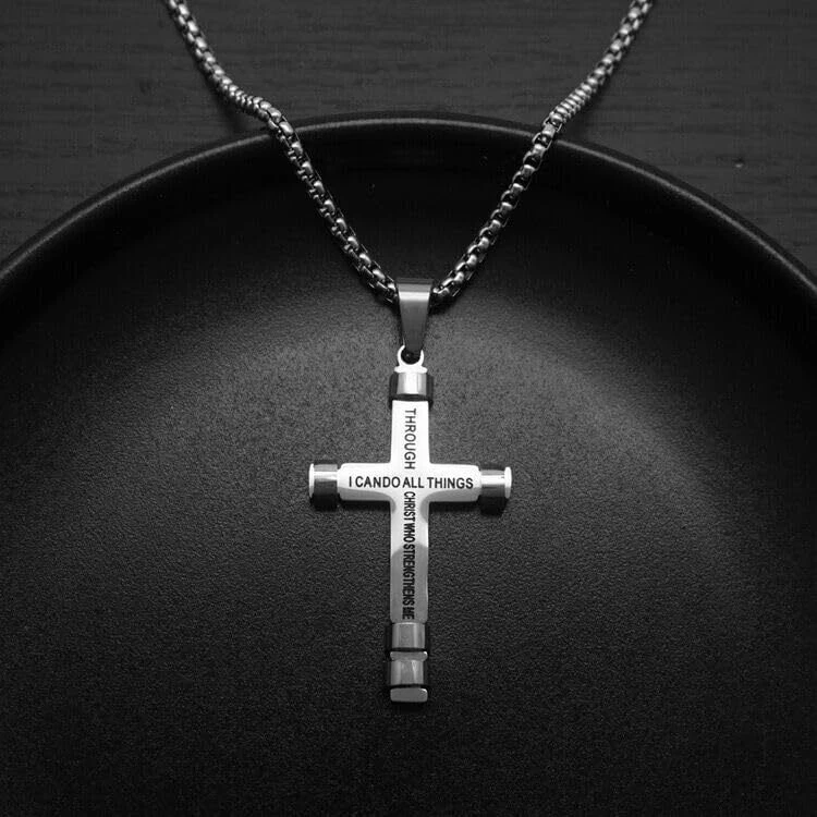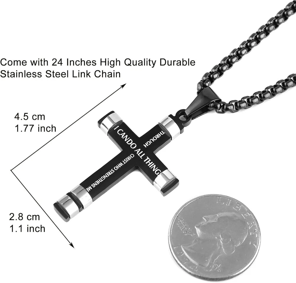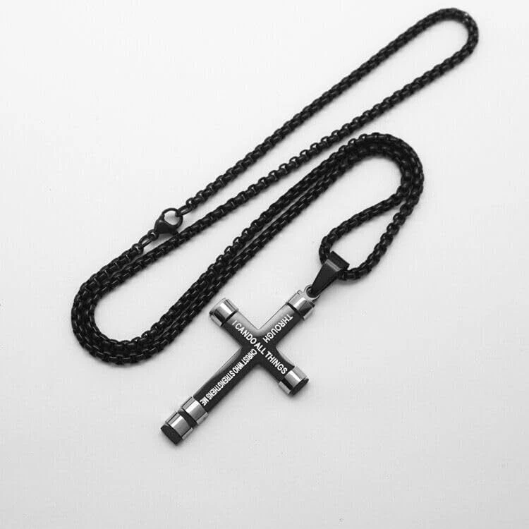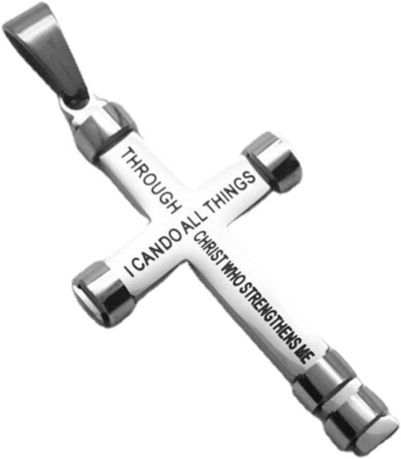 Product Description From Cy trendy brand Idea : We Committed to the design and production of men's and women's jewelry We love life and yearn for freedom Give out your brilliance every day. Powerful Christian Verse about Strength and Perseverance. Inspiring ! Come with 24 Inches Stainless Steel Link Chain Pendant size : 4.5 x 2.8 cm / 1.77" x 1.1" Material Type: 316 stainless steel. Suitable for daily wear, outdoor, shower, gym and sports. Smooth shining finish. Resistant to discolouration, sweat, heat, tarnish, water, smudge. Can be stored away without tarnishing. Suitable for sensitive skin and allergy prone skin. Will not irritate skin or cling to clothing. Please do not use if allergic to stainless steel. Package Included : 1 Pendant +1 Chain Our products are designed by designers, and each product has a unique meaning . This unique piece of jewelry is a perfect gift . High polished. Exquisite workmanship and comfort Fit.