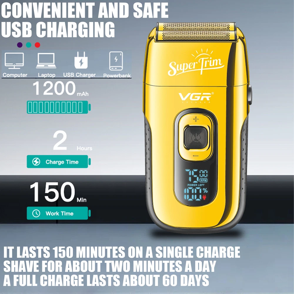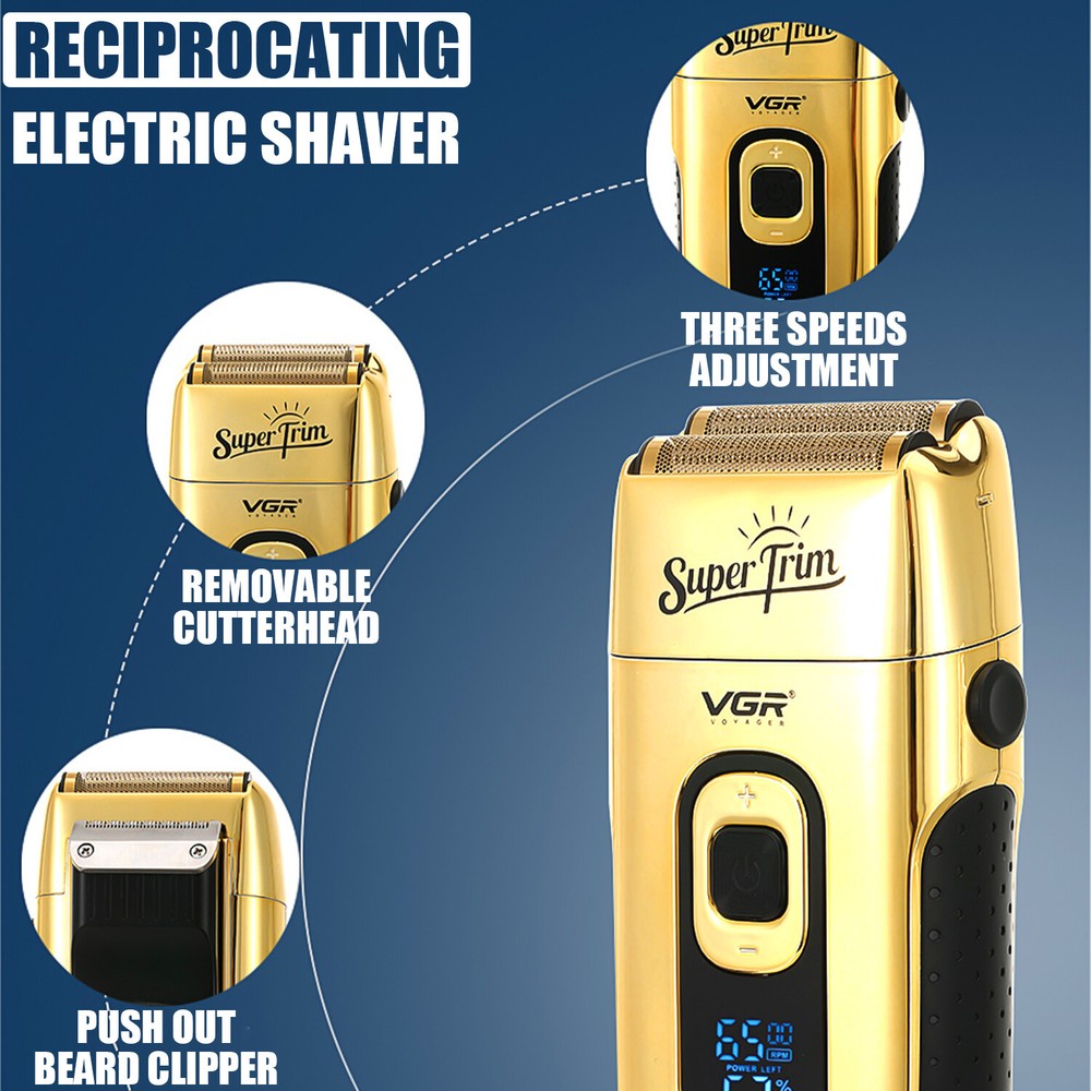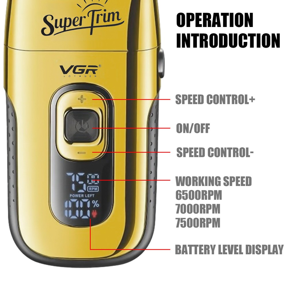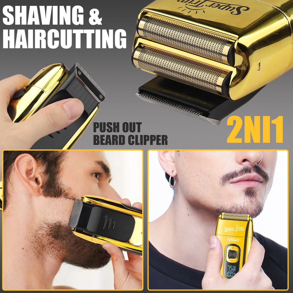 Product Description USB charge and LED display- Charging 2 hours can be used for 150 minutes. You also use while charging when it's out of charge. You can charge it not only with an adapter, but also with a portable power supply, computer, car charger, etc. It is a perfect beauty kit for home and travel. Double durable cutter- Stainless steel cutter blade wtih frequent vibration can cut closer, cleaner and more smooth. Professional Foil Shaver- V-332 is a rechargeable foil razor with durable, skin-friendly blades to prevent allergic tingling. Interchangeable foils- Equipped with two durable ultra-thin replacement foils, which is only 0.02mm. One is for beard shaving and the other is for hair cutting. Pop-up sideburns -The retractable sideburns trimmer on the back, which is ideal for longer hair or the edges of hair trimming. 3 Adjustable speed and LED display- As shown in the picture, there is a + and a - button, which is a power and gear adjustment button, press + button to increase speed, press - button to reduce speed. There are three speeds to choose from (6500RPM, 7000RPM, 7500RPM), and you can adjust it according to different length, hardness, and thickness of hair.. Package Includes 1 * Foil shaver 1 * Replaceable foil head 1 * Storage bag 1* Protective cover 1 * USB cable 1 * Cleaning brush Note: 1. We provide clear pictures, measurements where possible. 2. The color of the actual items may slightly different from the listing images due to different displays. 3. There may be slight error due to manual measurement. Please make sure you do not mind before purchase. 4. Please leave a message before you give a bad feedback, if the products have some problems. Thank you for your kindly understanding. Shipment Payment Return & Refund Feedback Shipment All item will be carefully packaged very well with safe material and shipped to US States. Items will be sent in 2 working days,usually shipped by USPS Priority Mail. It will take about 3-5 days to US addresses. If you would like to ship by other shipment methods,please contact us.( shipping cost will be combined for multiple items you purchase at a time.) Payment Only PayPal is acceptable.It is a safe and easy payment method for buyers. Please pay in 48 hours after you win the item(s).If payment cannot be made in five days,your order(s) will be claimed as unpaid case and the item will be relisted. Return & Refund Customer satisfaction is our first priority. 30-days return is available after delivery. However, return shipping and insurance cost will be on buyers. Please email us before returning. Delivery date will be different according to UPS or USPS tracking system, so please inspect your item immediately upon arrival. Money will be return to you after the return item is sent back. We can not refund to you, if your return item is broken or damaged. Please ensure its safety. Feedback Your feedback is very important to us. If you can't leave us a "5-Star" rating and a positive feedback, please contact us without hesitation before leaving feedback. We are eager to work with our customers. We believe in communication. Give us a call or send us an email, we will make things right for our buyers. Positive feedback for our buyers will be left automatically by eBay Seller Manager Pro.