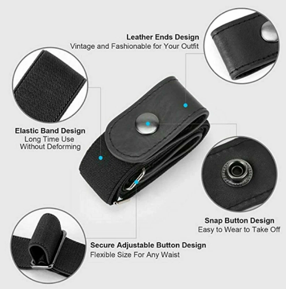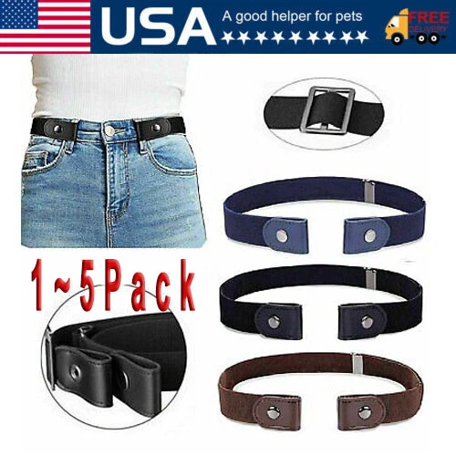 Men Women Buckle-free Elastic Invisible Waist Belt for Jeans No Bulge Hassle Description 💙 Easy Use Belt to Make Life Easier - To use this elastic belt, just snap on once and forget you're wearing a belt all day. Hassle-free dressing, save time for bathroom breaks ! 💙 Buckle-less Belt, Looks Almost Invisible - No buckle belt, there's no bulge and no flap on the side. This belt for jeans is very low-profile and keeps pants in place well 💙 High quality elastic material - It's very soft and comfortable. Really relax your waist.No need to readjust it even after a big meal. No buckle cutting into you when you sit down 💙 Free Size - Adjust to Your Most Fit Size Specification Type: Waist Belt Features: Elastic/Stretch Color : Black/Blue Material : Faux Leather/Canvas Size : For Waist Size 24" - 48" Package include: 1/2/3/4/5 x Waist Belt Feedback: 1) Your Feedback is really important to us,please take a few seconds to leave great feedback if you are satisfied with our product or service, thank you so much! 2) We always offer the lowest price for best goods and service to you. 3) Please contact us before leaving neutral(3 stars) or negative(1-2 stars) feedback.We will try our best to solve the problem and leave you a happy shopping mood here. Thank you!