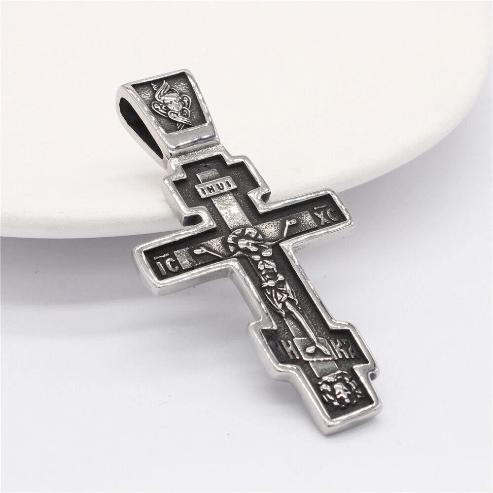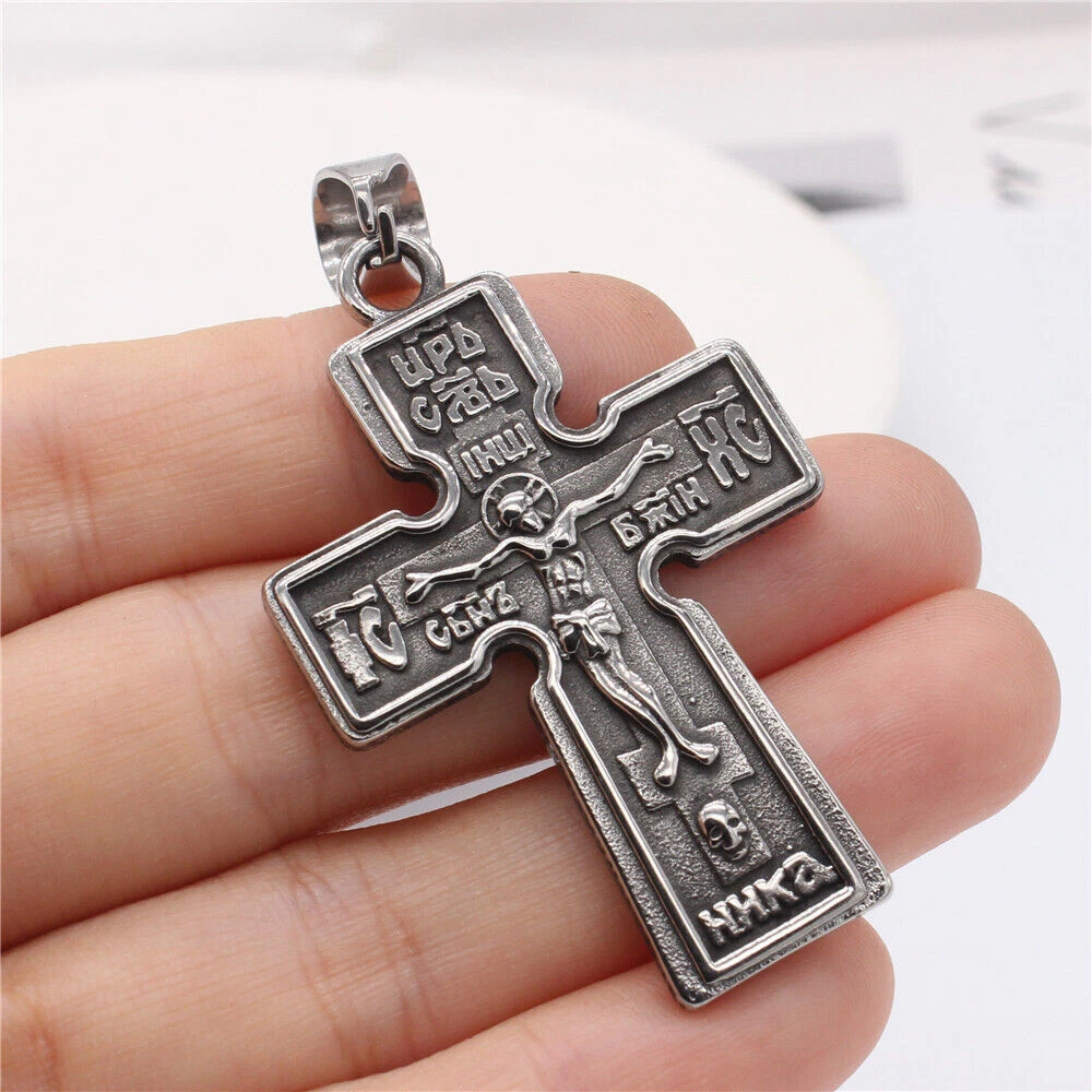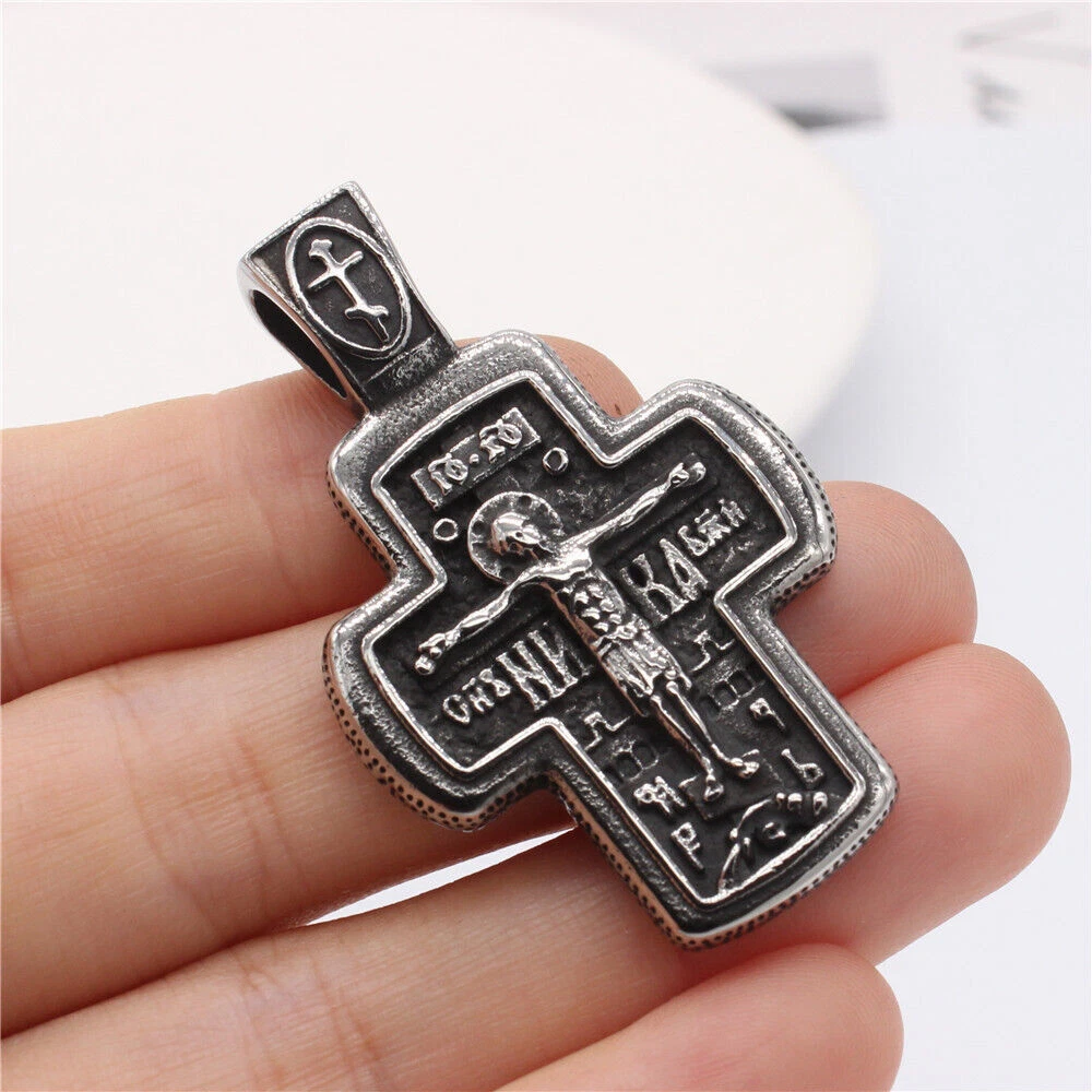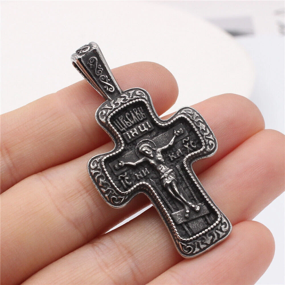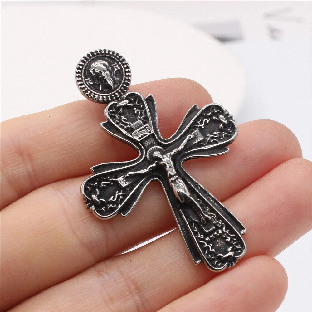 Men Women Cross Necklace Retro Jesus Crucifix Byzantine Christian Pendant Gifts