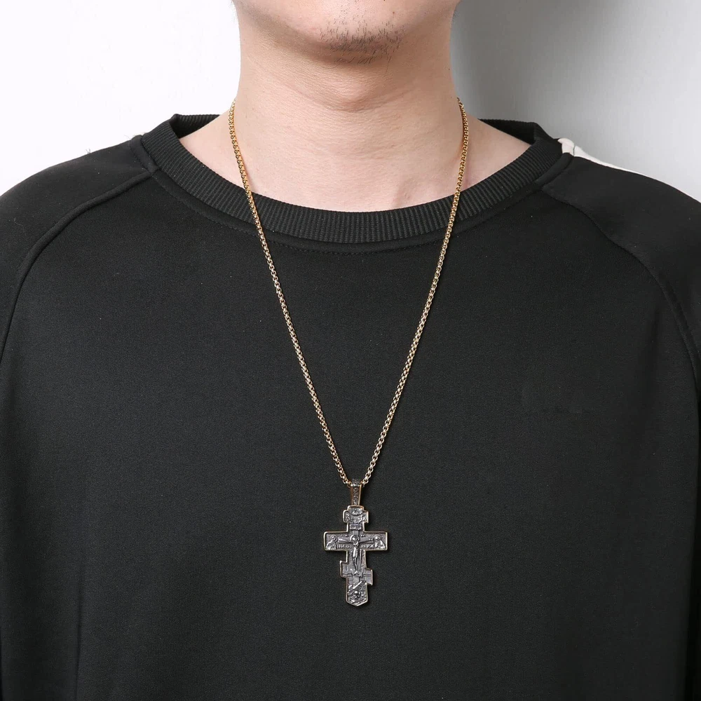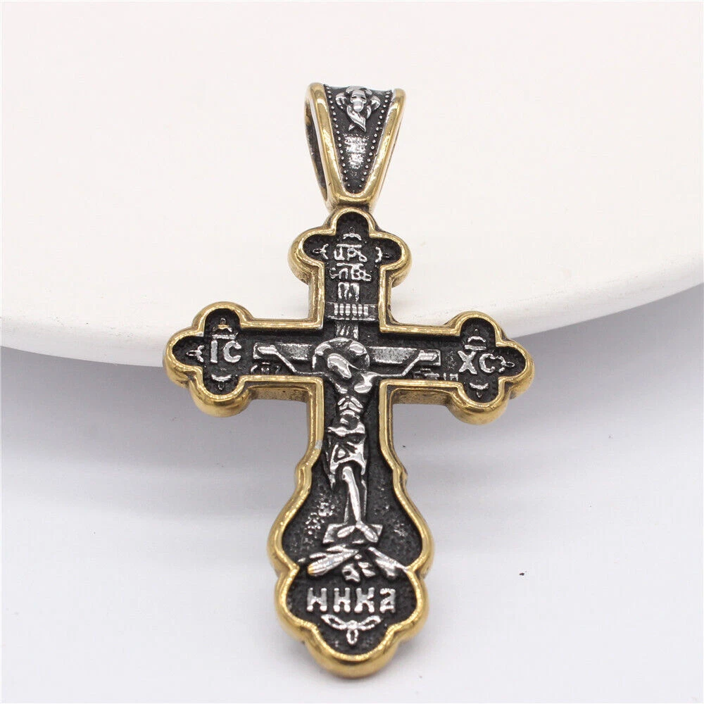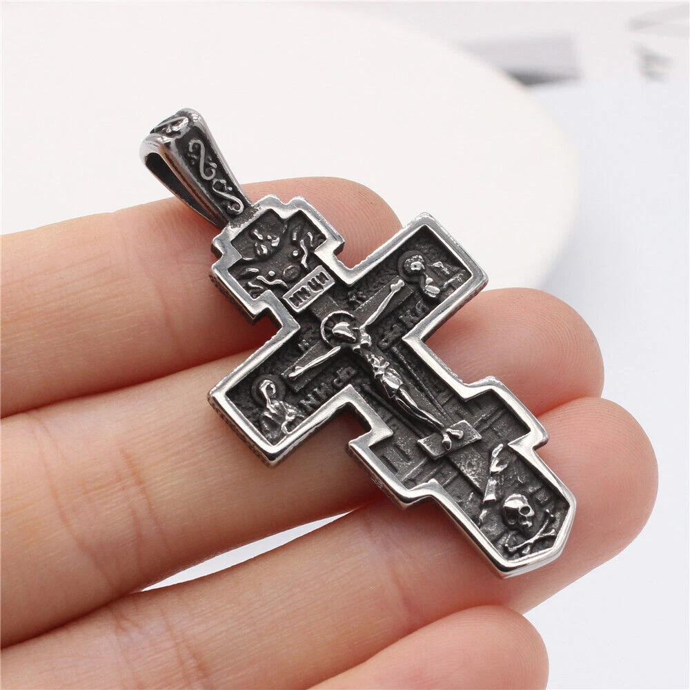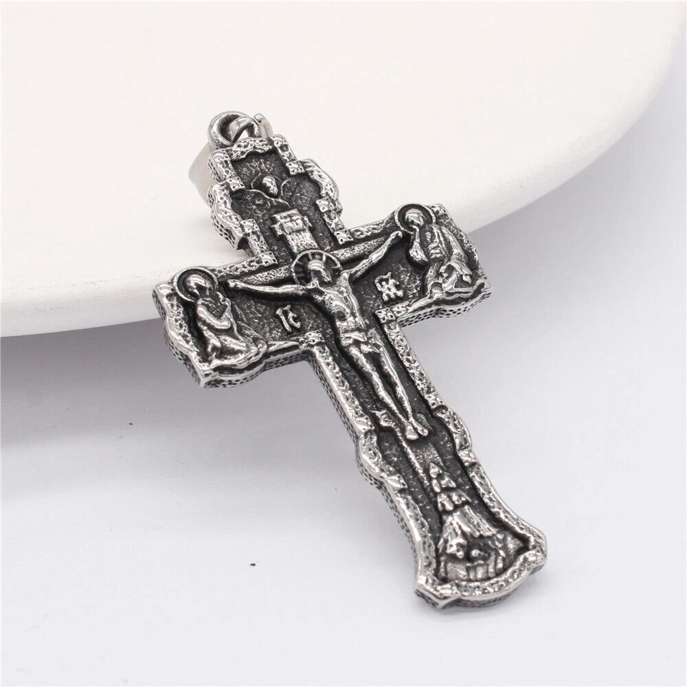 Men Women Cross Necklace Retro Jesus Crucifix Byzantine Christian Pendant Gifts
