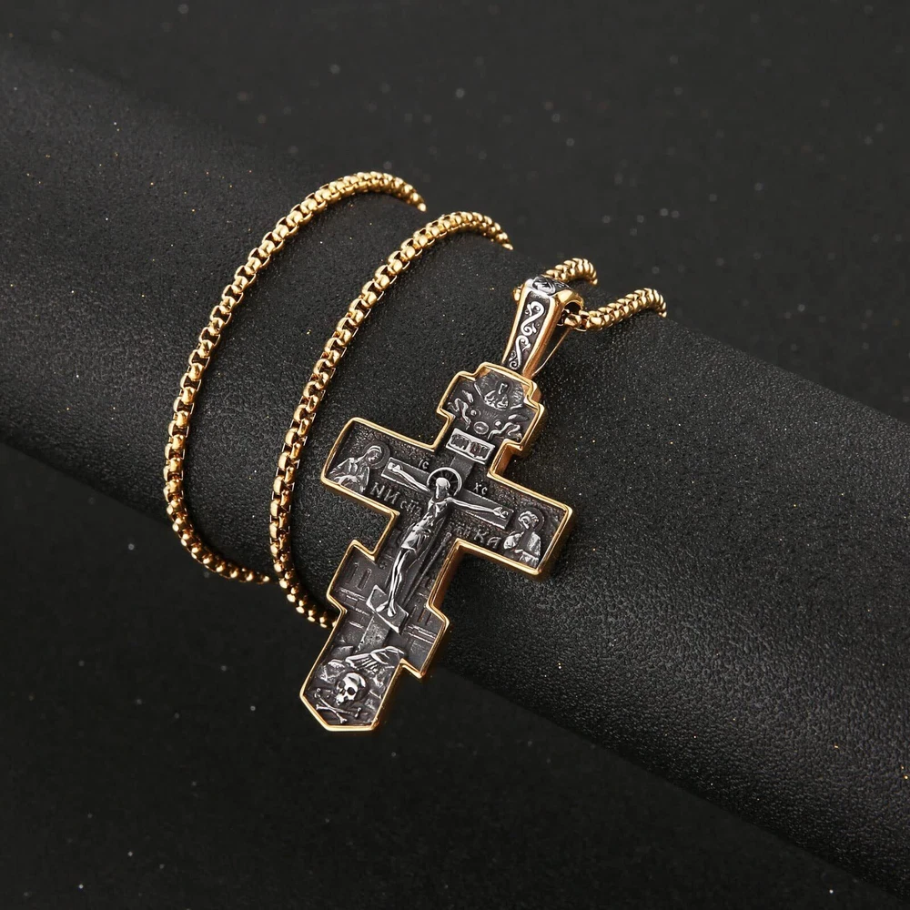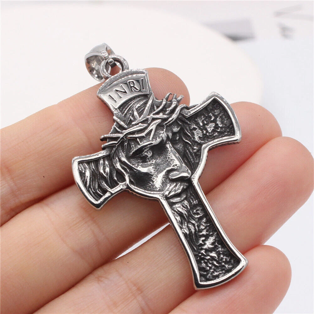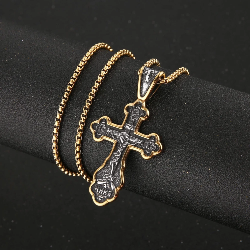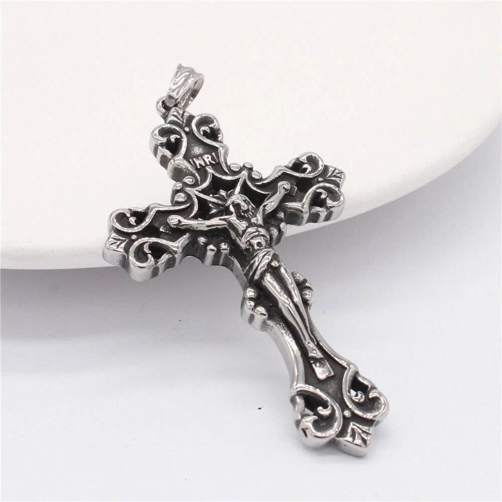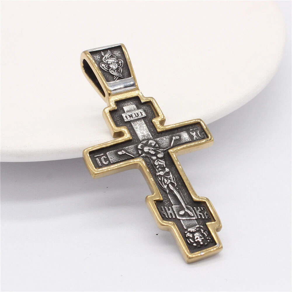 Men Women Cross Necklace Retro Jesus Crucifix Byzantine Christian Pendant Gifts