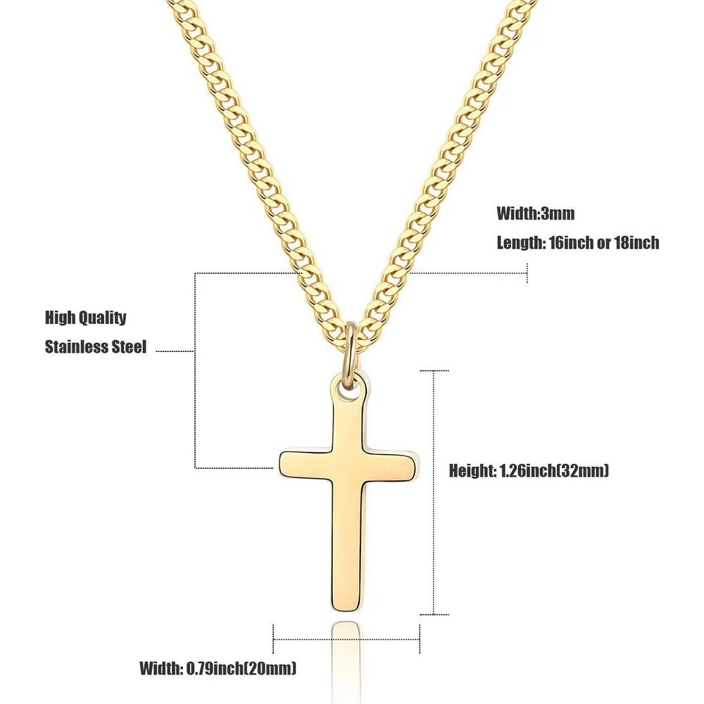 Men Women Cross Necklace for Boy Girl Stainless Steel Small Pendant Cuban Chain