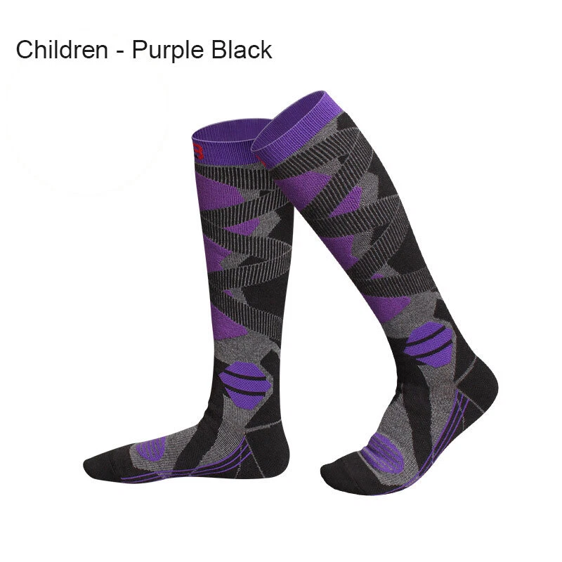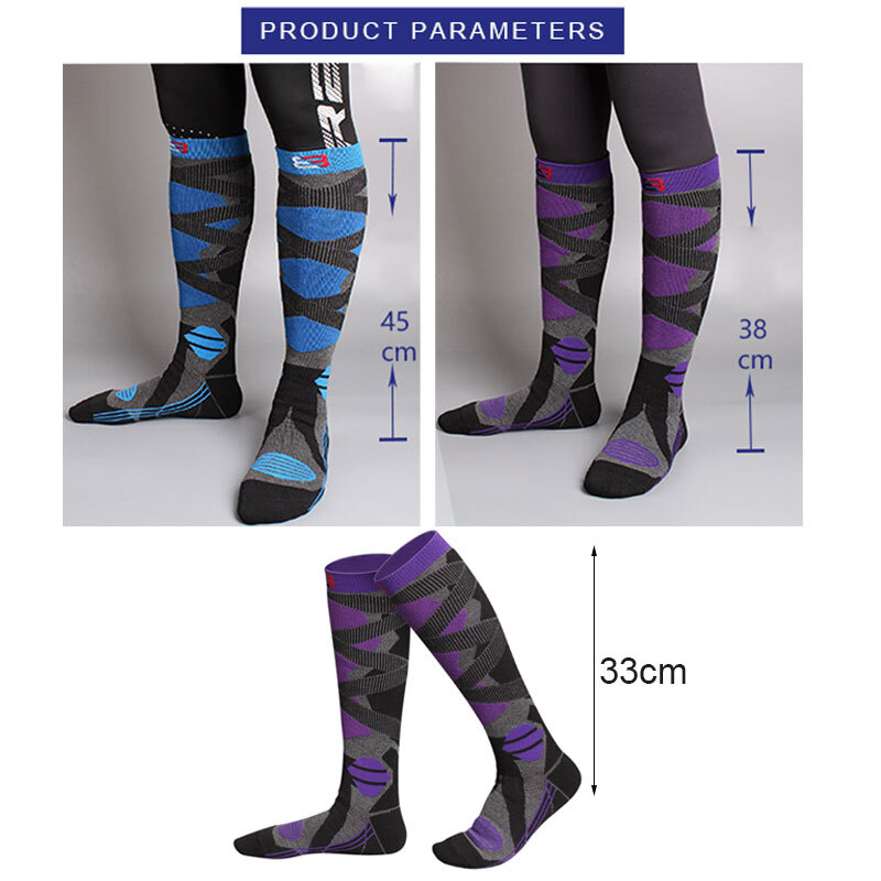 Product Name: Thick and Warm Skiing Socks Size: Men's socks (sizes 39-45), Women's socks (sizes 33-39), Children's socks (sizes 31-38) Tube height: Men's socks are about 45cm high, women's socks are about 38cm high, and children's socks are about 33cm high Function: Quick drying, anti slip, sweat absorption, anti friction Tube height: calf socks Suitable season: Winter Product Category: Professional Sports Socks Applicable scenario: Skiing Color: Women's Purple Black, Women's Pink White, Men's Grey Black, Men's Blue Black, Children's Purple Black, Children's Pink White, Children's Grey Black, Children's Blue Black Size: One size fits all Ingredients and content: 95% polyester fiber, 5% spandex Style: Sports Packa ge included: 1 Pair of s ki socks