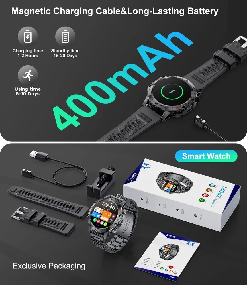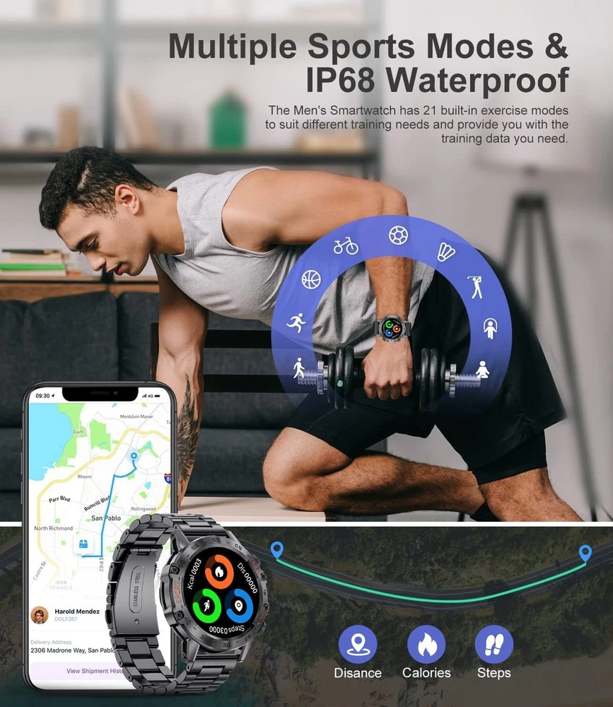 Men's 100+ Sports Modes Smartwatch - Bluetooth Calls & Health Monitoring Feature ‹ › ‹ › ‹ › ‹ › ‹ › ‹ › ‹ › ‹ › ‹ › Men's 100+ Sports Modes Smartwatch Bluetooth Calls & Health Monitoring Feature Key Features: Military Grade Standard & 5ATM Waterproof: Crafted using special composite materials and a rugged metal shell, this smartwatch is built to withstand the toughest environments. It has passed rigorous tests, maintaining functionality in extreme conditions, including low temperatures. Bluetooth Calls & Message Notification: Stay connected effortlessly with a 5.0 Bluetooth chip. Make and receive calls, get text notifications, control music, and trigger your phone’s camera—all from your wrist, ensuring you never miss important updates. Multifunctional Smart Watch: Experience a plethora of features including AI voice assistance, blood pressure and oxygen monitoring, heart rate tracking, sleep analysis, alarm, calculator, breathing exercises, and more, elevating your routine. Long Battery Life & Touch Screen: Enjoy a powerful 400mAh battery offering up to 30 days standby and 7-10 days of regular use. The 1.39'' HD touch screen with customizable display offers clarity even under bright sunlight. Personal Health Assistant: Monitor your heart rate and sleep patterns 24/7. Logging data for 30 days helps you understand and improve your overall health. 100+ Sports Modes: Whether it's running, cycling, or skiing, with over 100 sports modes to choose from, you can track critical data like distance, speed, and calories burned, helping enhance your athletic performance. Outstanding Compatibility & Service: With a 12-month warranty, our smartwatch is an ideal gift for any occasion. Compatible with Android 4.4+ and iOS 8.0+, customer service is ready to assist with any concerns within 24 hours. Why Choose Our Men's Smartwatch? Elevate your active lifestyle with a smartwatch designed for durability, functionality, and style. Merging cutting-edge technology with a rugged construction, you have a reliable companion that keeps pace with your dynamic routine. Unleash the power to monitor your health, stay connected, and tackle any adventure with confidence. Experience the fusion of performance and elegance—order yours today! Shipping Free & Fast Shipping - We offer free shipping to most of the USA with a normal delivery time of 3-10 businessdays. However, due to various situations, additional delivery time (up to 3 weeks) may be required for some items. Alternative Carriers - We may use alternative carriers (e.g. USPS, FedEx, UPS, etc.) to ensure your package arrives safely and on time. Due to the use of multiple carriers, we are unable to provide a tracking number automatically. Handling Time - Orders are processed and shipped within 1-5 business days of receiving cleared payment. Shipping Restrictions - Shipping to Alaska, Hawaii, Puerto Rico, Guam, and other US territories may incur shipping charges or delivery restrictions. Please contact us before ordering, or your order can be refunded/cancelled. State Restrictions - There may be restrictions based on your state of purchase. For example, certain items may not be shipped to California due to state regulations. Contact for Tracking Updates - If you require tracking updates or have any concerns about the delivery of your order, please feel free to contact us, and we will be happy to assist you. Return Please see our ebay return policy. We do not accept return on most products. This is to avoid customers mis-using ebay returns. All sales are final. Please be sure to check the return policy listed at the top of the listing. In rare cases, we may accept returns, if the buyer pays both ways shipping and 20% restocking fee. If you are un-sure of return policy of a particular item, please ask before buying. Payment We accept all major credit cards, PayPal, and Apple Pay for your convenience. Your payment information is secure and encrypted to ensure a safe and seamless transaction. Please complete your payment within 3 days of purchase to avoid any delays in shipping. Feedback Your feedback is extremely important to us. We strive to provide the best products and customer service possible. If you are satisfied with your purchase, please take a moment to leave us a positive review. If you have any concerns or issues with your order, please contact us before leaving negative feedback. We are committed to resolving any problems and ensuring your satisfaction. Contact Us If you have any questions or concerns, please feel free to reach out to our customer support team. You can contact us through the eBay messaging system. We are available Monday to Friday, 9:00 am to 5:00 pm EST, and we will do our best to respond to your inquiry within 24 hours. Buy it now and enjoy a pleasant shopping experience! UPC: Not Set Serial Number: Not Set Unit Quantity: 9.7 oz Compatible Operating System: Android,iOS - Apple Network: Unlocked Features: Bluetooth Enabled,Bluetooth Calls,Notifications,Voice Assistants,100 Sport Modes,Stopwatch,Health Tracker,Alarm Clocks,Timer,Weather Forecast,Password Lock,Find Watch & Phone,Calculator,Collection Code,Business Card,27 Languages,Pedometer,Distance,Calories,Music & Camera Control,Do Not Disturb Mode,Brightness Setting,Multisport Tracker,Activity Tracker,Phone Call Brand: Unbranded Model: Military Case Size: 1.39 inches Band Material: Silicone Series: Military Smart Watch Band Color: Black Case Material: Composite Materials Case Color: Black Operating System: Android / iOS Storage Capacity: 128 MB MPN: Not Set Country/Region of Manufacture: Not Set Manufacturer Warranty: Not Set Unit Type: oz