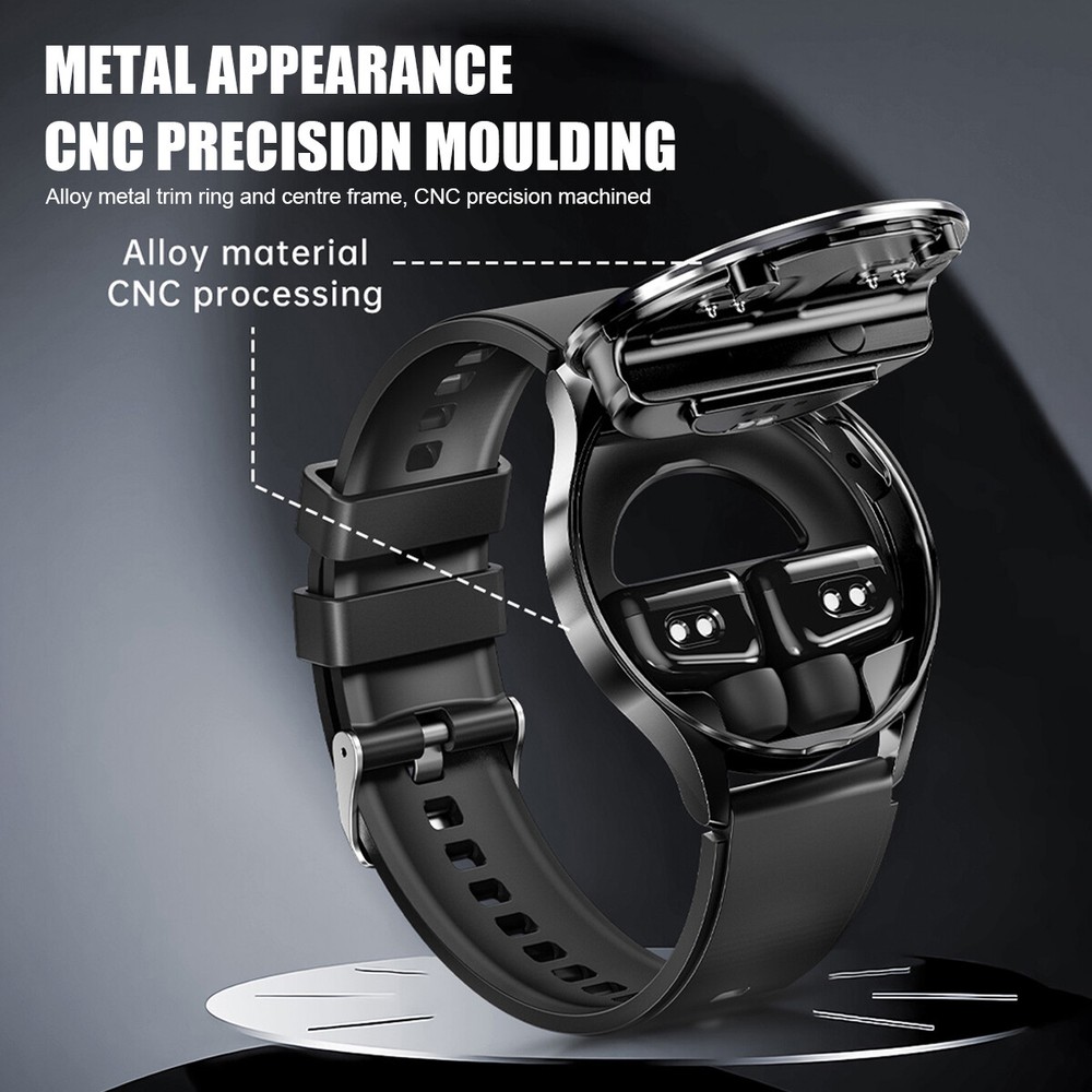 Product Description Features: New design for 2 in 1: Smart watch with TWS bluetooth earbuds, perfect combination of smart watch, bluetooth headphone. All metal steel dial, full of high-tech feeling. 1.39 Inch Large Screen Smart Watch:With 1.39" large screen, super Retina HD display, 360*360 HD resolution, the Smart Watch has better color saturation, the picture quality is more delicate and clear. 10+ watch dials can be used, and you can define your own theme. Make/Receive Calls & Support Notifications: After connecting to bluetooth, you can directly dial the phone number on the screen to answer the call. When you smartphone receive calls and messages (like SMS, Skype, Facebook, Twitter, WhatsApp, Line, Viber.), it will push to TWS earbuds watch. Make our lives more convenient and intelligent. Powerful Battery: Build-in 240mAh polymer battery for watch and 25mAh polymer battery for earbuds. Large capacity and low power consumption design offers longer endurance. 8-12 days Standby. The smart watch can charge the earphones for 2-3 cycles times. More Application: With IP67 waterproof, the smart watch can connect with Android ios cell phone, it has multi language, information alert, alarm clock, bracelet, health monitoring(24h continuous heart rate, sleep, blood pressure), Exercise records (pedometer, calories, mileage),Time, week, date. Built in NFC function makes this watch a smart lock key for your house or office, no more worries about forgetting take keys when go out. Specifications: Material: Metal, silicon Screen size: 1.39 inches, resolution 360 x 360; Bluetooth-compatible version: call Bluetooth-compatible 5.0/data Bluetooth-compatible 4.0; Music time: 3.5 hours; Charging time: 1-2 hours; Memory: 192KB RAM+1024KB ROM+128MB UI-Flash; Compatible system: Android 4.4 and above; compatible for ios 8.0 and above; APP software: FitCloudPro; Features:Bluetooth call, full touch, heart rate, shake and take photos, call reminder / rejection, information reminder, Multi Sport mode,weather,NFC Main functions: multi-language, information reminder, alarm clock, looking for bracelet, health monitoring, exercise record (pedometer, calorie, mileage), time, week, date, information reminder Watch battery:250mAh polymer battery Earbuds battery:25 mAh polymer battery for each earbud APP name: FitCloudPro App supports languages: English, Chinese Simplified, Chinese Traditional, German, French, Arabic, Czech, Greek, Spanish, Japanese, Persian, Italian, Korean, Dutch, Polish, Portuguese, Russian, Finnish , Swedish, Thai, Hungarian, Slovak, Croatian, Albanian, Turkish, Ukrainian, Hindi 26 languages Watch Support: English, German, French, Arabic, Czech, Greek, Spanish,Persian, Italian, Dutch, Polish, Russian, Finnish , Swedish, Thai, Hungarian, Slovak, Croatian, Albanian, Turkish, Ukrainian, Hindi The function of the button on the earbuds: 1. Press the button 4 times before pairing --- Chinese and English prompts to switch; 2. Long press 2S to turn on the phone, hold for 1.5 seconds to reject the call, and hold for 3 seconds to turn off; 3. Double click the button --- answer/hang up the phone; 4. 4 click the button --- wake up compatible for SIRI; 5. Double click the button --- play/pause; 6. Triple click the left ear button: previous song; triple-click the right ear button: next song); 7. Reset the headset to factory settings: When the headset is turned off, press and hold for 8 seconds. (If the two ears cannot be paired, you can restore the factory for re-pairing). Package included: Smart watch TWS earbuds (1 Pair) USB charging cable Instructions On Feb 11, 2025 at 23:45:50 PST, seller added the following information: