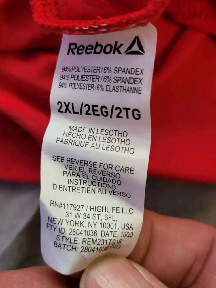 Mens 2xl Red Reebok Shirt