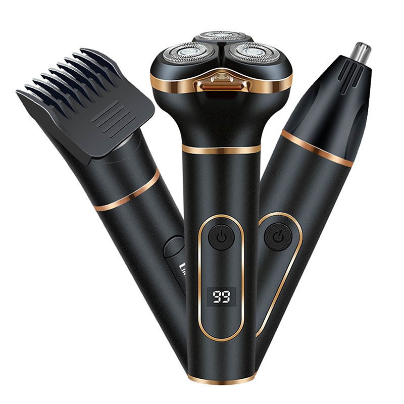 Features 1、POWERFUL VERSATILITY: Men electric shaving machine combines beard trimmer, hair trimmer and nose hair trimmer in one device to meet all types of trimming needs 2、FIT SHAVING: The men electric shaving machine features a floating head that smoothly adapts to your face, neck and chin for a comfortable, fit shaving experience 3、SMART FEATURES: The men facial electric shaving machine comes with a high definition display that displays low battery alerts and washing reminders. The men electric shaving machine also includes a convenient travel lock that allows you to safely turn off by simply pressing the on or off key for 3 seconds 4、WATER PROOF AND FLEXIBLE: Enjoy the flexibility of wet and dry shaving with an IPX7 water proof men electric shaving machine. Whether you prefer a quick dry shave, a refreshing wet shave with cream, or a luxurious shower shave, offer a fluent, fit shaving experience 5、EASY CHARGING: Enjoy flexibility with men electric shaving machine and USB charging. Connect the included USB cable to your computer, mobile power, or car. A 1.5 hour charge provides up to 90 minutes of use, and the convenience of cordless keeps you flexible Specification Item Type: Cordless Electric Shaving Machine Material: ABS and metal Blades Type: Triple rotatable blades Noise: 36-45dB Power: 5W Battery Type: 1000mAh li ion battery Package List 1 x Electric Shaving Machine 1 Set of Accessories 1 x Charging Cable 1 x User Manual