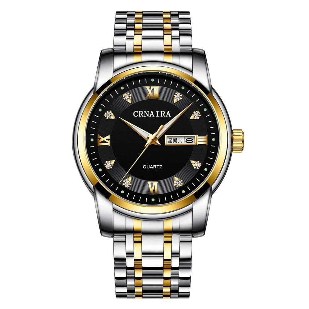 Men's 30m Waterproof Quartz Watch with Stainless Steel Band and Various Color Options Product information: Color: gold shell gold surface gold steel belt, gold shell white surface gold strap, black shell black surface gold strap, gold shell black surface gold strap, silver case black surface silver steel belt, Silver Case White surface silver steel belt Thickness: 8mm Waterproof performance: 30m Movement type: Quartz Dial diameter: 39mm Crown type: Spiral crown Case back type: Ordinary Mirror material: mineral reinforced glass mirror Buckle style: bilateral button Watch-buttom material: Stainless steel Strap material: Stainless steel Packing list: 1* Watch Product Image: Men's 30m Waterproof Quartz Watch with Stainless Steel Band and Various Color Options Product information: Color: gold shell gold surface gold steel belt, gold shell white surface gold strap, black shell black surface gold strap, gold shell black surface gold strap, silver case black surface silver steel belt, Silver Case White surface silver steel belt Thickness: 8mm Waterproof performance: 30m Movement type: Quartz Dial diameter: 39mm Crown type: Spiral crown Case back type: Ordinary Mirror material: mineral reinforced glass mirror Buckle style: bilateral button Watch-buttom material: Stainless steel Strap material: Stainless steel Packing list: 1* Watch Product Image: eBay integration by