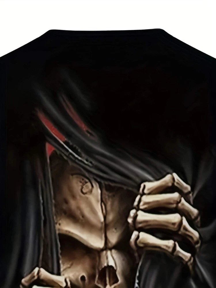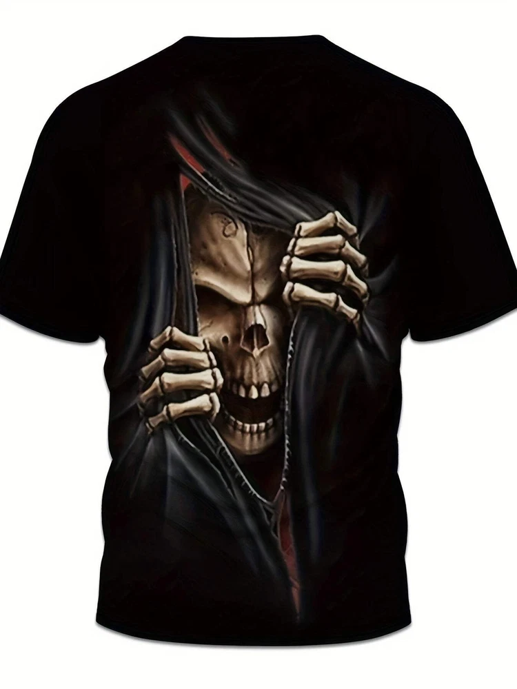 Men's 3D Skull Printed T-shirt - Casual Short Sleeve, Summer Outdoor, Stretch Po