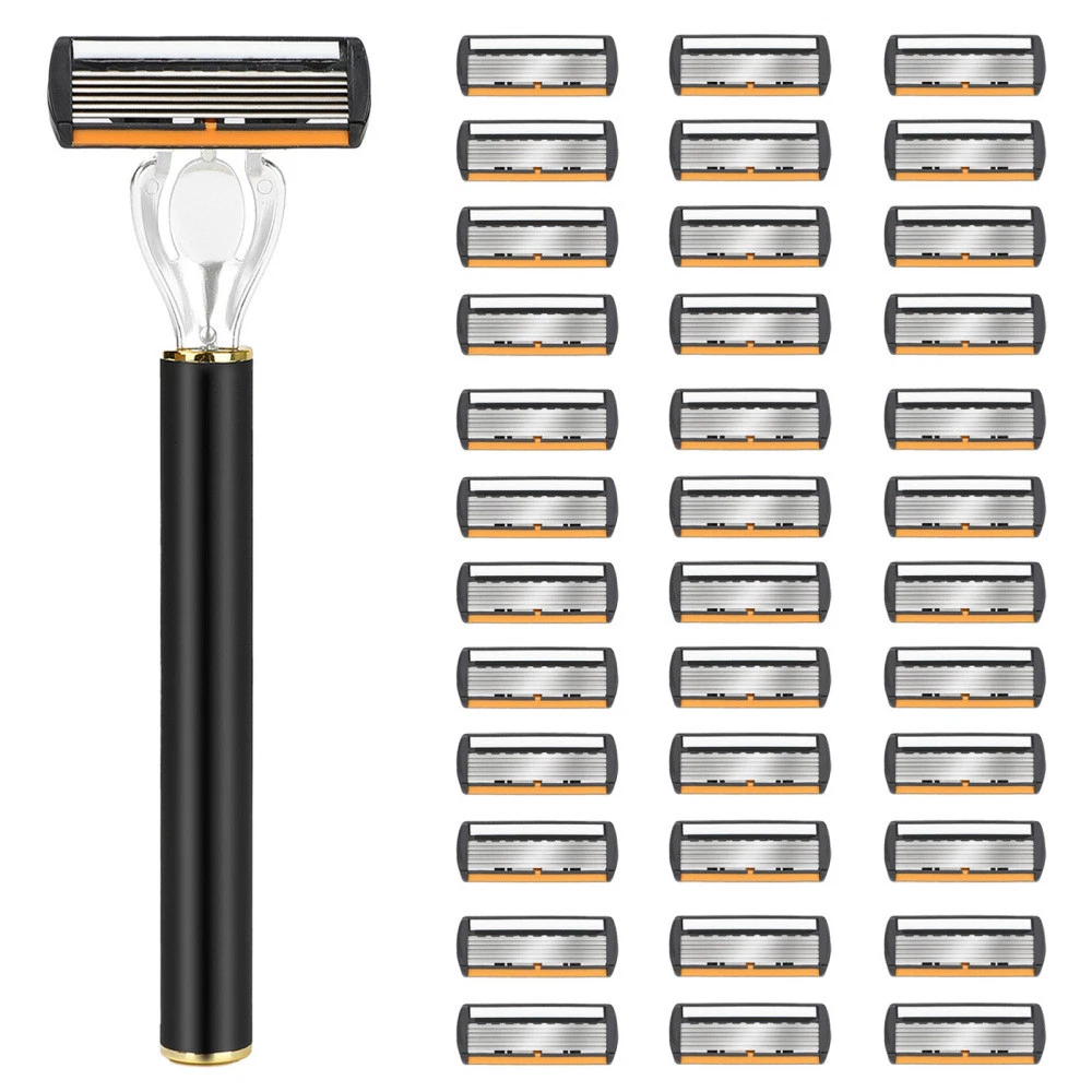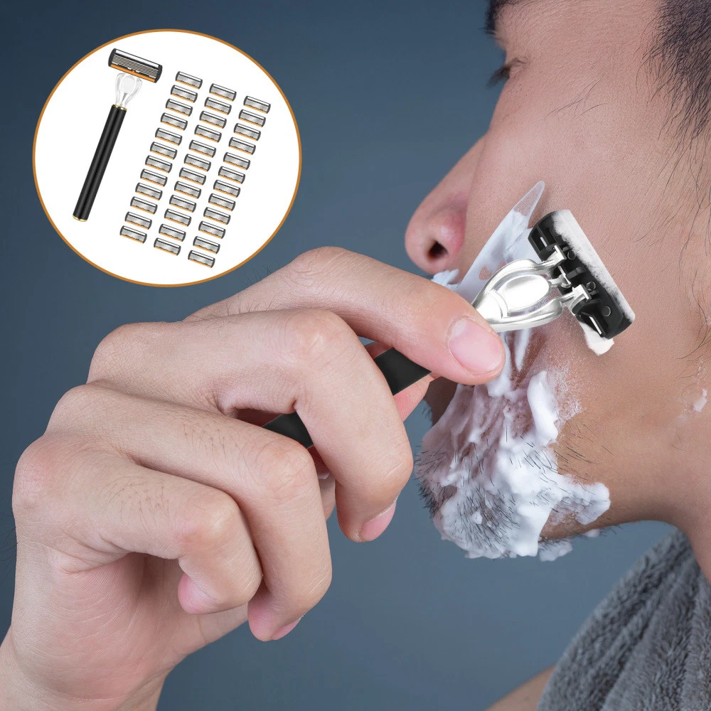 Men's 6-Layer Safety Razor - Stainless Steel Shaving Blade with Replaceable Head