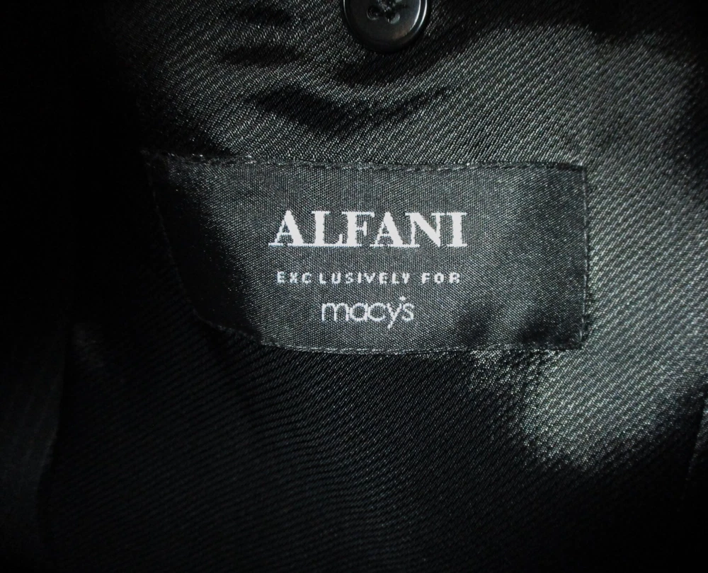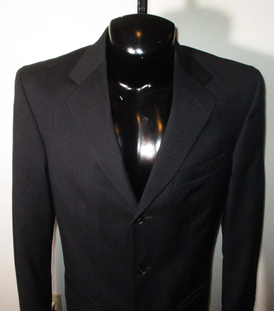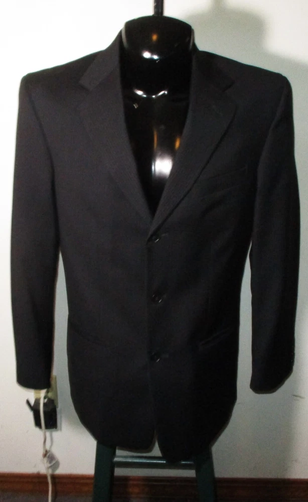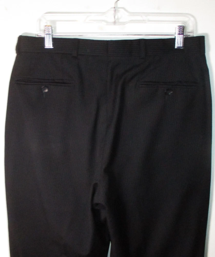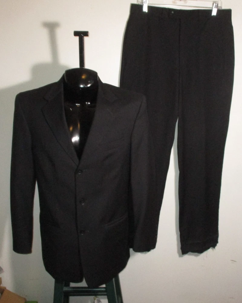 See my EBAY STORE at “SAMTPC53” to view 1000’s more of my Men's JACKETS!!! Combine Shipping: (on multiple items you pay full price on heaviest item first and then HALF PRICE shipping on ALL other items. Men's 100% Wool 2 Pc Piece Suit. Brand: ALFANI. Description: men's 100% Wool ALFANI 2 piece suit, Jacket- lining, 2 buttons on front, 4 button cuffs, 2 lower pockets and 1 upper front pocket, 3 inside pockets, pants- flat front and no cuffs, zipper and button on front, belt loops, 2 front side pockets, 2 rear pockets, see pics. Color: Black. Size: 40 Long, 32X32 (Note: pants have a 34" unfinished hem, please see measurements). Measurements: Jacket- 22" armpit to armpit, 19" back shoulders, 32" neckline to hem, 17" insleeve, 24.5" shoulder seam to cuff, Pants- 32" waist, 32" inseam (Note: pants have a 34" unfinished hem), 11" rise. Material: 100% Wool. Condition: Excellent condition.
