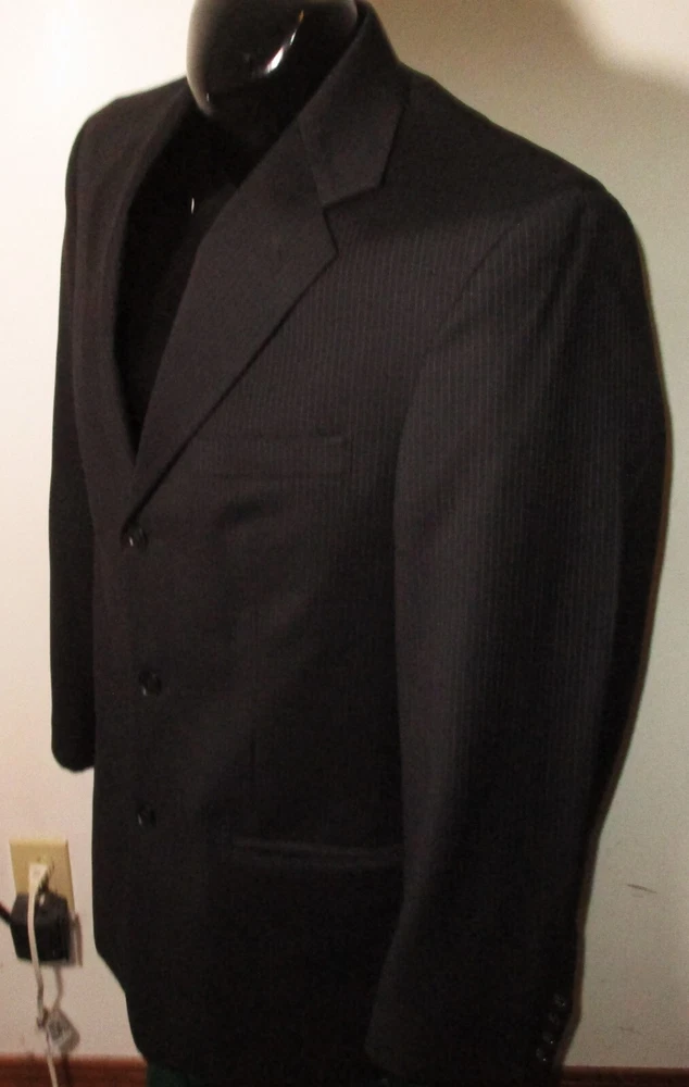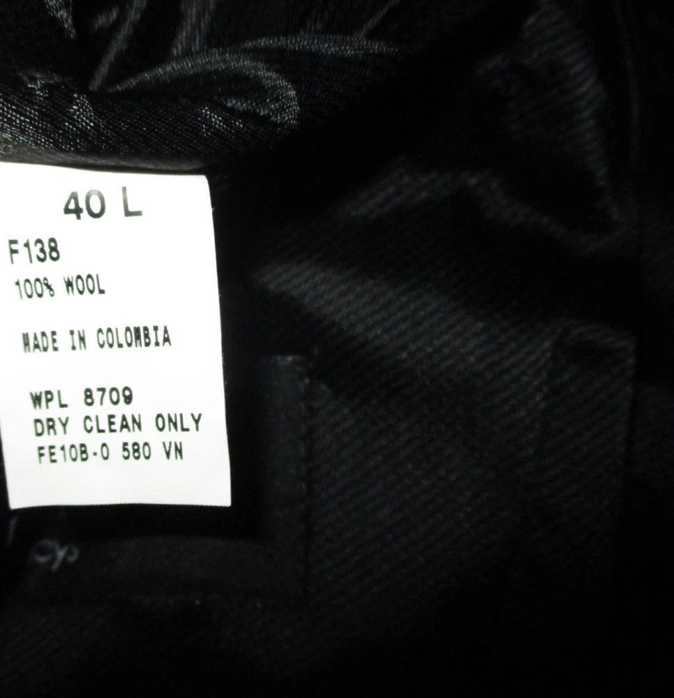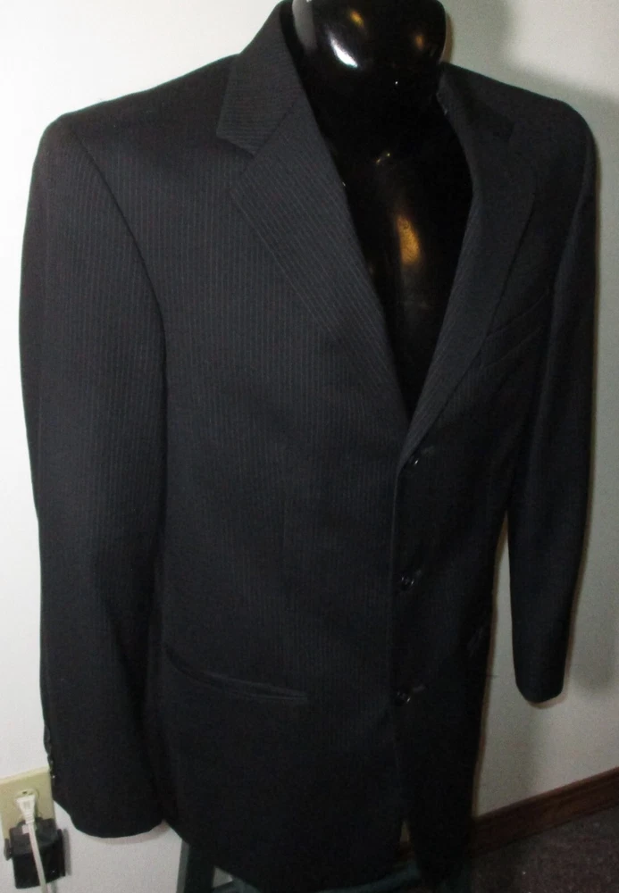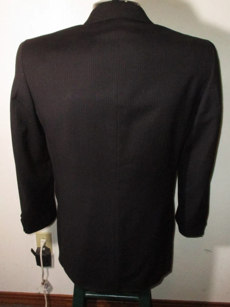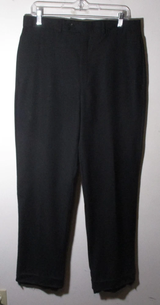 See my EBAY STORE at “SAMTPC53” to view 1000’s more of my Men's JACKETS!!! Combine Shipping: (on multiple items you pay full price on heaviest item first and then HALF PRICE shipping on ALL other items. Men's 100% Wool 2 Pc Piece Suit. Brand: ALFANI. Description: men's 100% Wool ALFANI 2 piece suit, Jacket- lining, 2 buttons on front, 4 button cuffs, 2 lower pockets and 1 upper front pocket, 3 inside pockets, pants- flat front and no cuffs, zipper and button on front, belt loops, 2 front side pockets, 2 rear pockets, see pics. Color: Black. Size: 40 Long, 32X32 (Note: pants have a 34" unfinished hem, please see measurements). Measurements: Jacket- 22" armpit to armpit, 19" back shoulders, 32" neckline to hem, 17" insleeve, 24.5" shoulder seam to cuff, Pants- 32" waist, 32" inseam (Note: pants have a 34" unfinished hem), 11" rise. Material: 100% Wool. Condition: Excellent condition.
