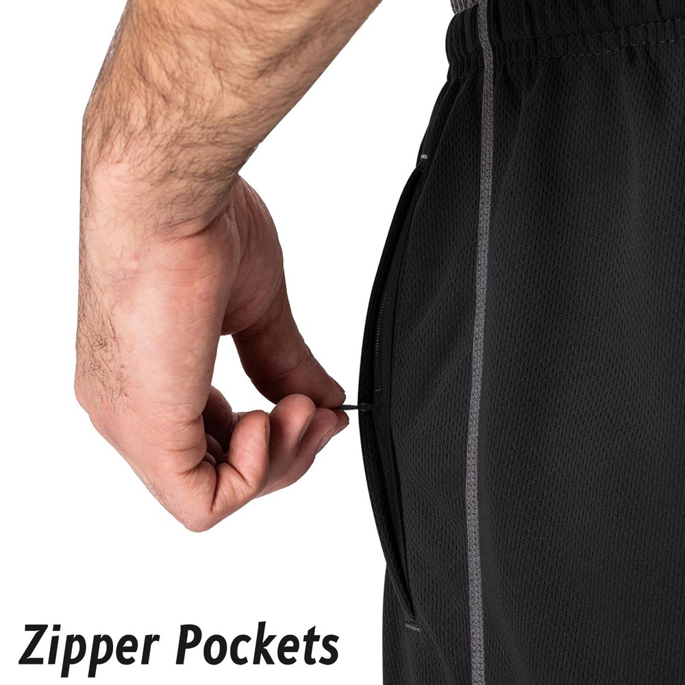 Mesh Material:Polyester lightweight fabric,breathable and soft,keep you comfortable for workouts and exercise Quick-Dry:Moisture transport system helps to release moisture from the skin,leaving you cool and comfortable,allows you to practice without sorrow and anxiety Zipper Pockets:Deep side pockets prevent loss of items during exercise,safe storage of mobile phones, keys, wallets, etc Loose fit Jogger Pants: Featured elastic and adjustable waistband can perfect suit your waist,make it comfortable and good for losing or gaining weight Occasion:Perfect for outdoor activities,running,training,fitness,bodybuilding, hiking,jogging,etc,or just lounge around the house in them