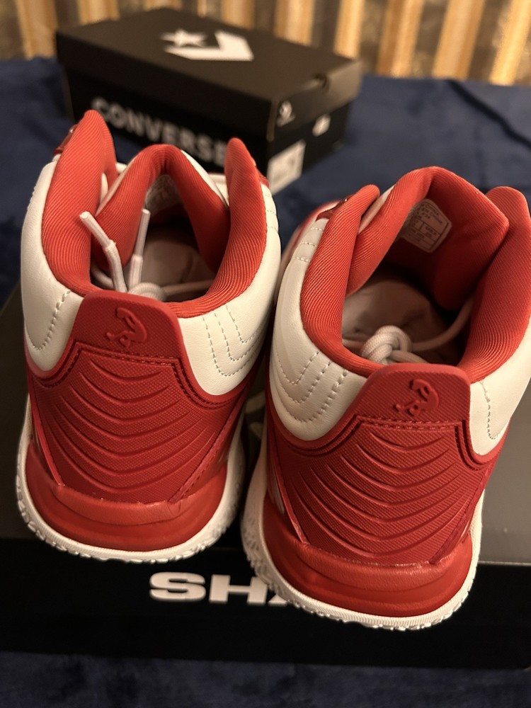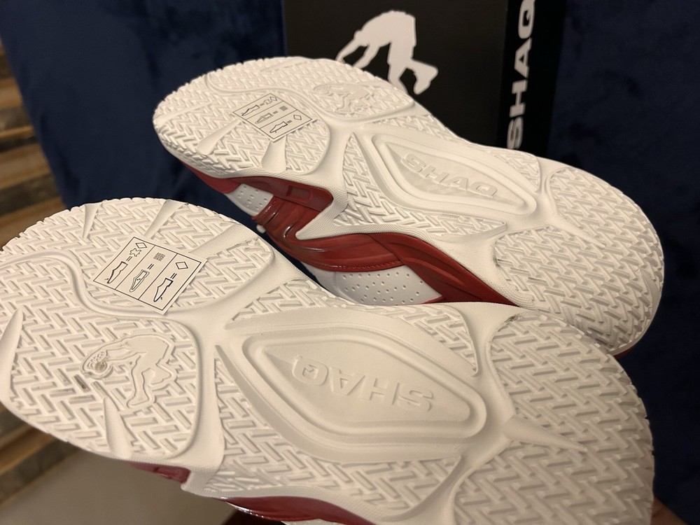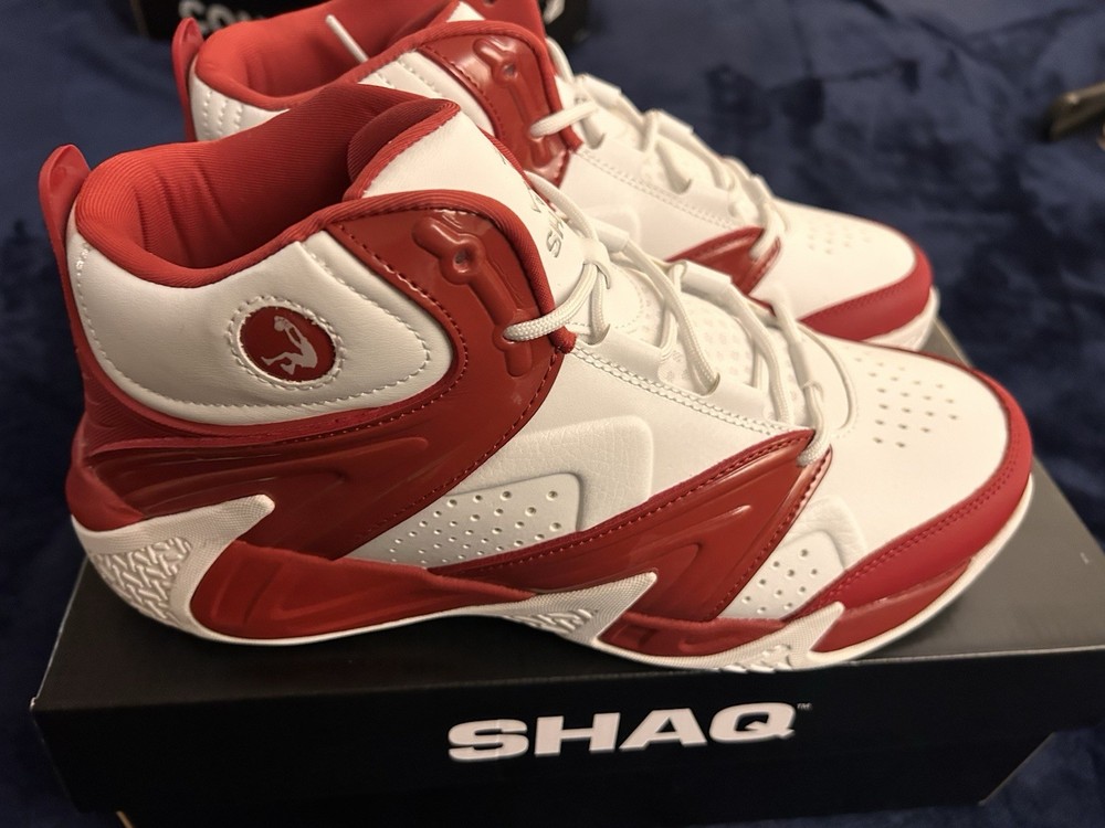 Elevate your game on the court with these mid-top Shaq Devastator sneakers in a striking red and white colorway. With a cushioned insole and fabric lining, these athletic shoes provide both comfort and support during intense basketball gameplay. The rubber outsole offers superior traction on the court, while the faux leather upper adds a touch of style to your overall look. These sneakers are perfect for any active man, whether you're playing basketball or simply running errands. The lace-up closure ensures a secure fit, while the striped pattern adds a classic touch to your outfit. Don't miss out on the opportunity to own these high-performance, stylish sneakers.