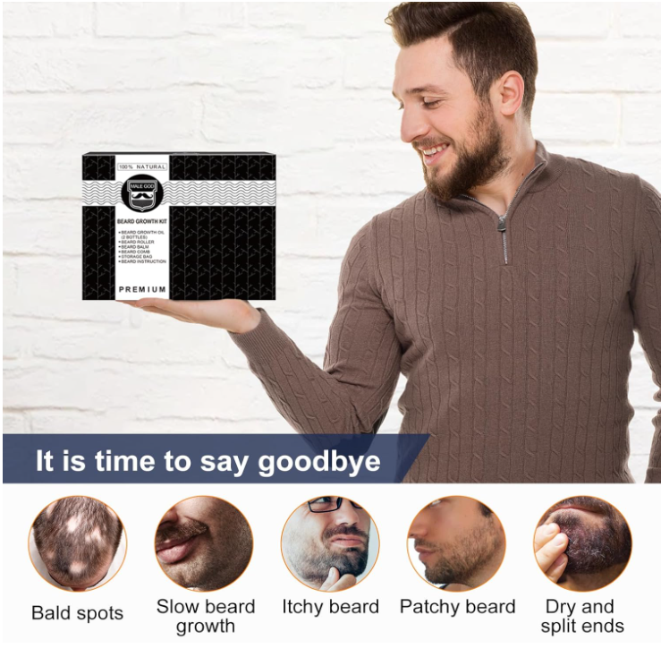 MALE GOD Beard Growth Kit, Beard Kit W/Beard Growth Oil, Balm, Comb, Massager for Spot/Patchy Beard, Gifts for Men Him Boyfriend Husband Product Benefits Nourishing, Thickening, Styling Hair Type All Material Type Free Mineral Oil Free Scent Unscented Liquid Volume 1 Fluid Ounces About this item Get A Fuller and Manly Beard: Our handmade beard oil is designed to moisturize and nourish the hair while helping to fill in patches and thicken beard. It contains a variety of premium ingredients to help achieve a faster, healthier and stronger the beard & mustache . Most beard oil will clog your pores and leave greasy residue, but our beard oil is made of premium ingredients that won't clog your pores Unique Gifts for Him: The beard kit is an excellent gift for men as it provides him with a personalized grooming experience. From nourishing beard oil to sculpting balm and precision comb, each item is designed to build up his unique beard and meet his specific grooming needs. It provides an opportunity for men to take care of themselves and indulge in some self-pampering, making it a unique men's gifts Beard Balm and Beard Comb: Our beard balm is handmade with natural ingredients which will not harm the skin and facial hair. It absorbs quickly and easily to soften your hair while soothing the skin underneath the beard. It also can gently remove dry skin cells to prevent dandruff. The beard comb is made with Sandalwood to prevent snags and static, this dual-sided comb offers multiple benefits. It grooms and shapes facial hair, distributes natural oils, and removes loose hairs Personalized Gifts for Men: This beard kit for men is a perfect gift set for those who are having a beard or are suffering patchy spots. It would be a unique gift for the husband, boyfriend, fiance, etc during Birthdays, Anniversaries, Father's Day, Holidays, Thanksgiving Day, and Christmas. Choosing beard kit by MALE GOD as anniversary or birthday gifts for him (husband, or boyfriend), he will get a charm and manly beard Gifts on Any Special Event: Our beard gift kit is a thoughtful and practical gift as it is an all-in-one solution that helps men achieve a fuller, thicker, and healthier-looking beard which will make any man feel confident and proud of his appearance. The kit comes in stylish and portable packaging, making it easy to store and use at home or on the go. Featured exquisite gift box, very perfectly suited as a gift to any gentleman with facial hair . We offer FREE shipping on all orders! . We ship within Five business days of payment, usually sooner. . We use a selection of shipping services such as UPS, FedEx, USPS etc. . We only ship to the lower 48 states, no APO/FPO addresses or PO Boxes allowed. . Local pickups and combined shipping options are not provided at this time. . Your satisfaction is a wonderful reward for our efforts. Please assist us by leaving a positive review if you feel pleased with our service. . In the event that you encounter any difficulties related to your order, please do not hesitate to reach out to us directly through the Messaging system on the Ebay platform. Kindly consider opening a COMPLAINT or a RETURN REQUEST as a last resort, only after all other possible measures have been attempted and we have been unable to provide you with assistance. . We will get in touch with you within 24 hours and make every effort to ensure your satisfaction. . Please rest assured of our service quality.