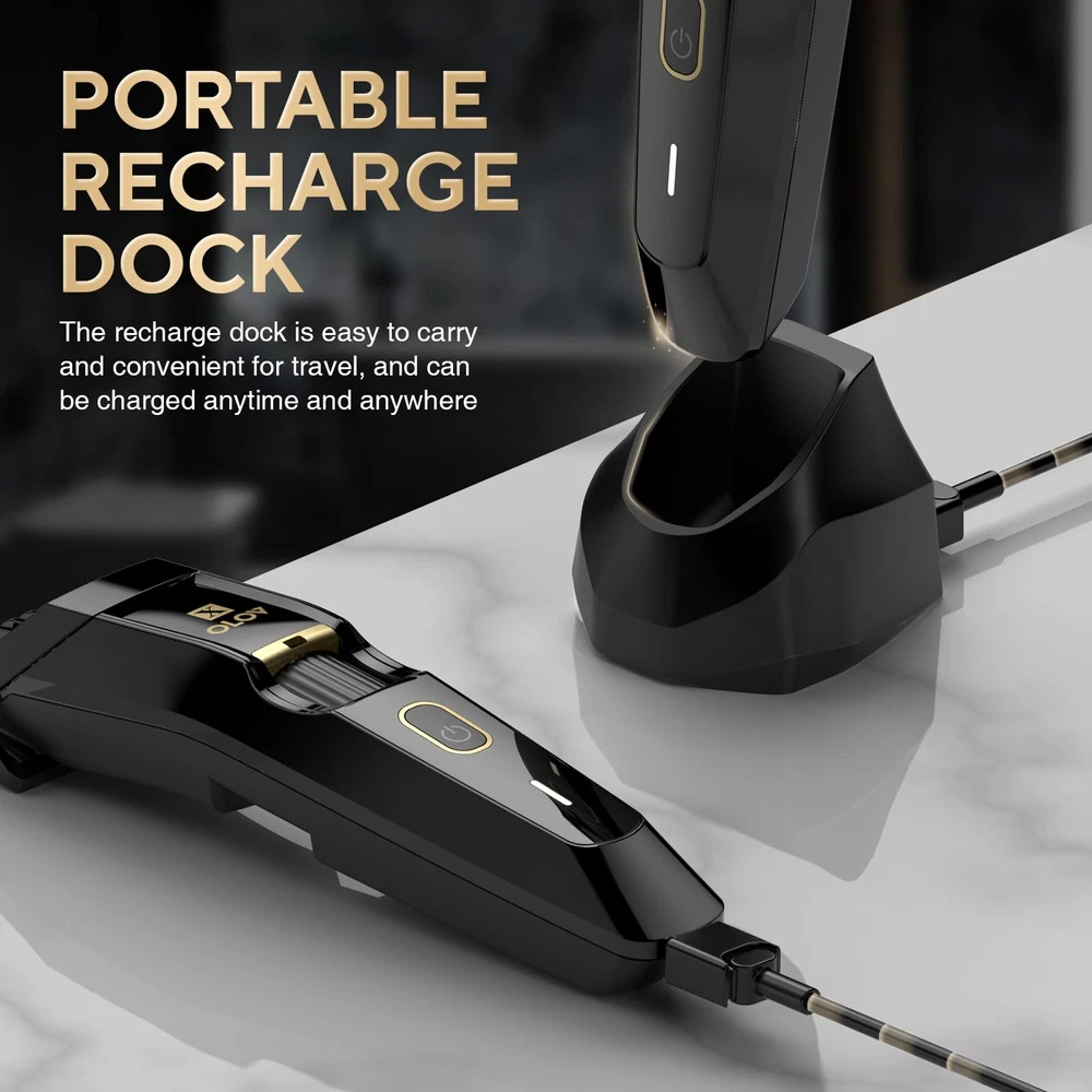 Transform your grooming routine with this advanced beard trimmer designed for precision and versatility. Featuring 20 adjustable length settings controlled by a precision dial, this trimmer lets you achieve your desired look with accuracy. The replaceable stainless steel blade ensures long-lasting performance and consistent results. This cordless trimmer offers the convenience of both wet and dry operation, making it perfect for use in the shower or at your grooming station. Its waterproof design makes cleaning simple and ensures durability. The sleek black finish adds a touch of sophistication to your grooming tools. Whether you're maintaining stubble, trimming your beard, or creating clean lines, this trimmer provides the control and reliability you need for professional-looking results at home 20 Precision Length Settings: The Electric Beard Trimmer offers a precision dial with 20 adjustable length settings, allowing for effortless customization from stubble to a full beard. Achieve your desired look with this versatile beard trimmer for men Cordless & Waterproof Design: Enjoy the convenience of a cordless design with the Electric Beard Trimmer. Its waterproof makes it ideal for wet/dry use, enabling you to trim in the shower and easily clean it by rinsing under water High-Quality Stainless Steel Blades: This professional beard trimmer is equipped with replaceable stainless steel blades that ensure a smooth cutting experience without pulling or irritation, making it suitable for all skin types, including sensitive skin Long Battery Life & Fast Charging: Experience up to 60 minutes of runtime on a single charge with the high-efficiency lithium battery of the Electric Beard Trimmer. Its quick-charging feature means you're back to grooming in no time Ergonomic & Sleek Design: Designed with an ergonomic grip for comfortable handling, the black Electric Beard Trimmer ensures stability during use. Its modern and stylish look adds a touch of elegance to your grooming routine
