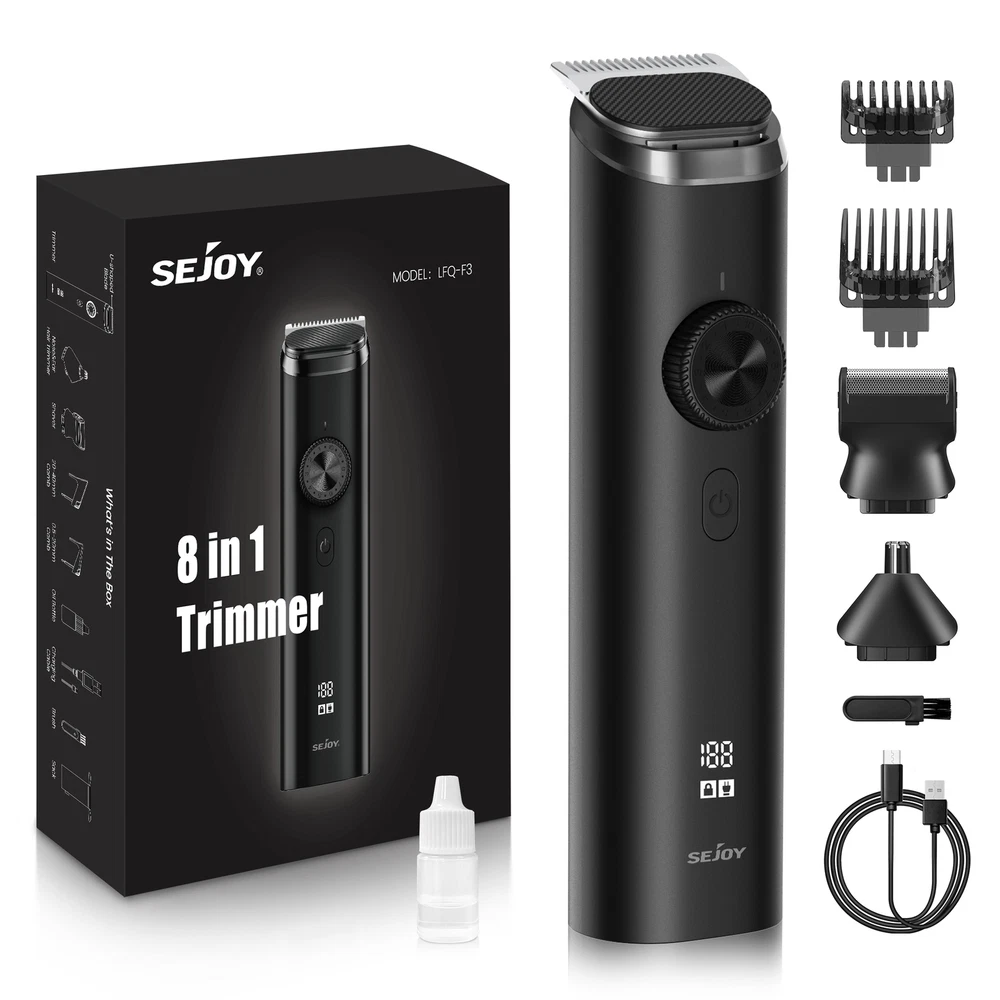 Product Description In modern families, haircuts, trimming, shaving are already synonymous with fashion. Before, haircuts need to go to barbershops. Nowadays, we not only go to barbershops for haircuts, but also will buy a family hair clipper. With the gradual improvement of living quality, we realize that haircutting at home is a healthy and fashionable way of life, also good for spending some qualified time with family and ourselves. And we give more importance to health than fashion. Beard trimmer, hair clippers, nose hair trimmer become one of the must-haves for many emerging home care appliances. Sejoy focused on Personal Healthcare devices, home-care devices and Mother and Baby care products as a Professional Manufacturer for 20 years. We are here to provide you a whole package for the family due to the needs for hair, which is not only a good buy when purchase, but saves a lot every time you use. We warmly invite you to be one of our beloved customer! About this item Premium Blades: Mens hair clippers designed for smooth, quick, and clipping performance on all types of hair with high quality long lasting self-sharpening premium stainless blades, The tip part adopts safe R outlineing obtuse angle design, the professional edgers clippers satisfy any styling needs,such as lining, sculpt contours, and dry shaving. Super Easy to Use: This hair trimmer and clipper comes with 0.5-20mm comb*1, 20-40mm comb*1, Nose& Ear hair trimmer head*1, Shaver Head*1, Bush*1, Oil (used before and after a haircut)*1, travel sack*1, charging cable*1. Ready to use once reveived. User friendly, makes life easier when you are trying to follow the grain. Rechargeable & long-last battery: This hair clipper is equipped with the international standard 18650 capacity lithium battery provides exceptionally long using time and strong power output. It can support 280 minutes use of a full charge. Also compared with other types of batteries, it takes less time to reach full charge. Takes 3 hours to fully recharge by usb cable. Precision Length Dial: For 40 length settings in 0.5 mm step sizes, provides an effortless trimming experience with only 2 combs. Low noise & IPX5: With noise≤68bB and Full body washable. No hassle during and after using. Warranty: We are decent and integrity company exsited for 20 years, quality is guaranteed. Any questions, we are alway here to assist. 0.5-40mm Limit Comb With only 2 limited combs and a knob, the length limit of hair cutting can be adjusted by lowering the hair clipper to a state where only a certain length of hair can be cut, which greatly reduces the operating threshold of the hair clipper. Low Noise Noise is what we care about. With high standard guaranteed by delicate structure and quality control, noise is at minimum level to suit for operating for kids and toddlers. Compact Design With compact design and replacable blades, and stylish pouch, it is easy to take anywhere.