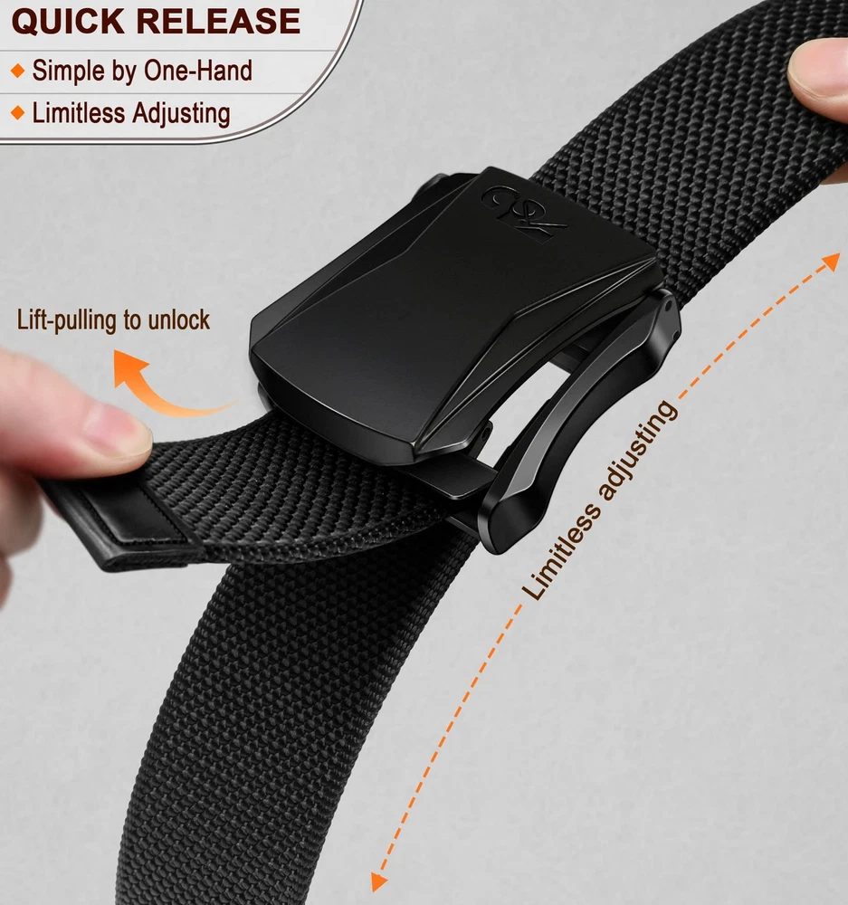 SIMPLE TO USE--Creative design with simplest structure,Closing the flip top to latch and pulling the strap tail to get quick release; EASY REPLACE--step to replace the belt from pant,just pulling the strap tail to open the flip top and then taking the strap off from buckle,not as complicate as other tactical versions; Exact Fit--By the new innovative stucture,you can untie the belt in 1 second to adjust the tightnss to get the best fit on your pant,furthermore,the strap provides proper stretchability to adapt the varies of your waist in movings or feeding; Cut To Fit--The buckle is removable,thus you can take off the strap easily to customize the desired size; Light Weight--Most Simple structure,super lightweigh,it holds your pant without feeling heavy.