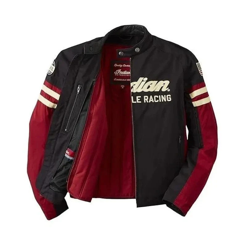 Product Features:- Men’s Black,Red Indian Motorcycle Jacket Crafted from 100% Genuine Cowhide Leather Classic Biker Style Design Durable and Long-Lasting Construction Front Zip Closure with Snap Button Collar Multiple Exterior and Interior Pockets Comfortable Polyester Lining Inside Ribbed Cuffs and Waistband for a Snug Fit Ideal for Riding, Casual Wear, and Street Style Available in Multiple Sizes Shipping: Yes, We Ship Worldwide! EXTRA $25 SHIPPING FEE FOR DELIVERY IN SOUTH AMERICAN REGION. WE PROVIDE FREE OF COST CUSTOMIZE SIZE FACILITY ON BUYER REQUEST