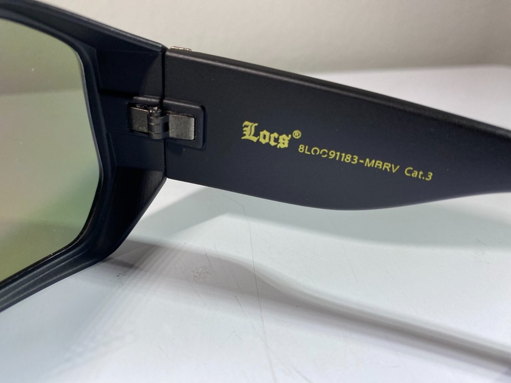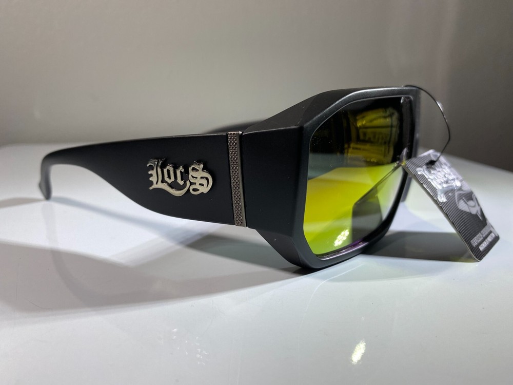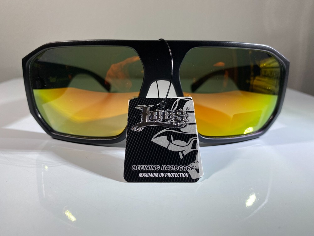 men's hexagonal shaped sunglasses with black frame and yellow reflective lenses. Great style at great price.