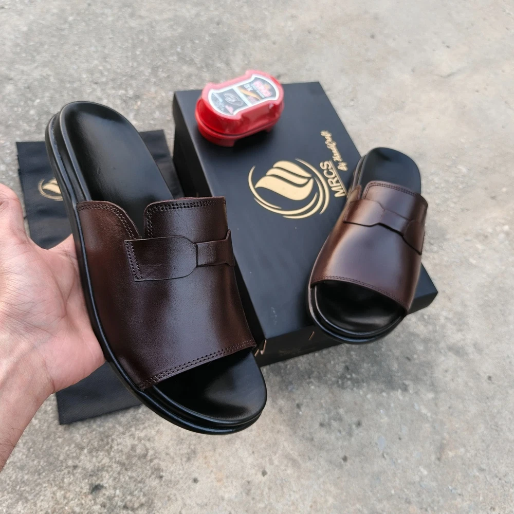 Welcome to MRCS Shoes - Where Craftsmanship Meets Quality Men’s Leather Slide Sandals – Handmade Slip-On Casual Slippers For Men. Sizes & Colors are Available This slipper is available in US Sizes 7, to 11 — designed for a comfortable and true-to-size fit. Available in Brown, Tan and Black. Note: Please message us after purchase (or before ordering) to confirm your preferred size and color so we can ensure you receive the perfect pair! At MRCS, we specialize in crafting high-quality handmade leather shoes designed for both comfort and style. As we are running a small business, we take pride in our ability to create shoes that not only look amazing but also stand the test of time. Our team has decades of combined experience in the art of shoemaking, using only the finest materials sourced from trusted suppliers. Each pair of shoes is meticulously handcrafted by skilled artisans who pour their expertise and passion into every stitch. From the rich leather to the sturdy soles, every detail is carefully considered to ensure durability, comfort, and a perfect fit. Whether you're searching for stylish dress shoes, casual wear, or something unique, our selection offers a range of designs to suit your personal taste. Every pair we create is a testament to our commitment to quality, craftsmanship, and customer satisfaction. Thank you for choosing MRCS — where tradition, quality, and attention to detail come together to create shoes that will last longer. We can make shoes in any color and in any size.