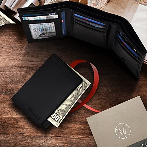 $ 16.04Leatherboss Slim Black Leather Trifold Wallet with ID Window and Coin Pocket