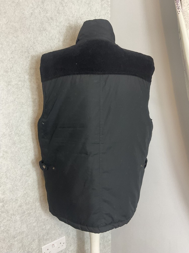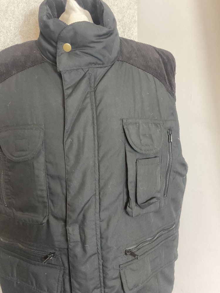 Cutting Edge padded gilet / bodywarmer /Utility Vest for man Black colour Warm padded design Multiple zip & flap pockets Corduroy detail on shoulders High collar with snap fastening Adjustable drawcord hem A practical and comfortable gilet, ideal for outdoor wear, walking, work, or casual layering. Condition: Excellent pre-owned condition Colour: Black Fit: Regular Material: • Outer: 65% polyester / 35% cotton • Lining & padding: 100% polyester Measurements: Please see photos for approximate measurements