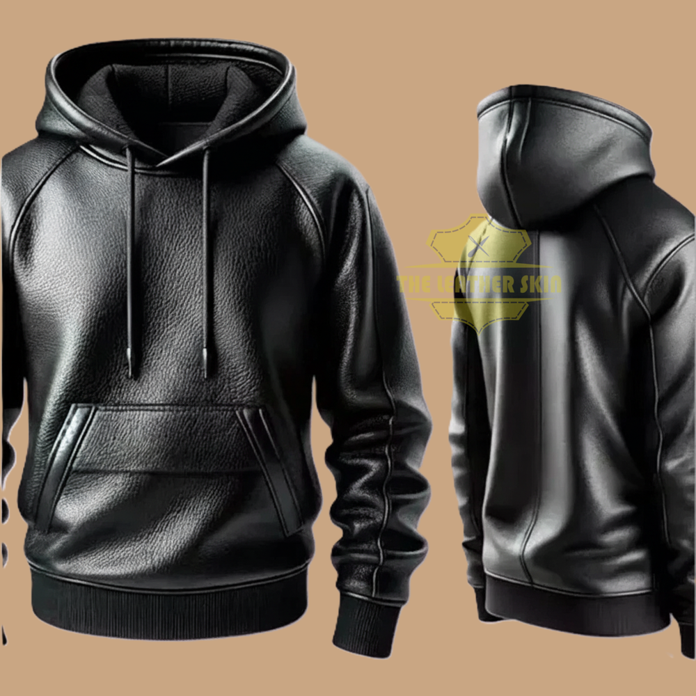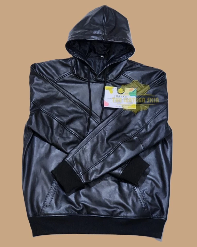 The Mem's Black Premium Leather Hoodie is a handmade genuine lambskin leather jacket that exudes classic style and sophistication. This solid black hoodie features a hooded accents and a classic closure, making it a versatile and breathable garment perfect for winter and spring seasons. With a size range from XS to 5XL, this pullover hoodie is designed for men who appreciate quality craftsmanship and timeless style. Ideal for riding, walking, or everyday wear, this leather hoodie from Pakistan is a must-have addition to any wardrobe.