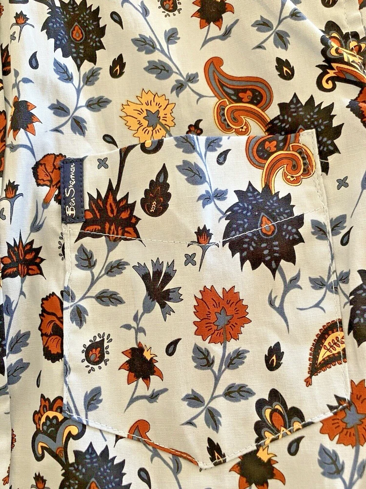 Crafted for the modern gentleman, this Ben Sherman men's dress shirt features a vibrant blue floral pattern that infuses a touch of elegance into any wardrobe. The short sleeve design and regular fit cater to a look that's both sharp and comfortable, making it an ideal choice for various occasions, from office wear to social gatherings.The shirt boasts a classic button-up closure, ensuring both style and durability. Its versatile themes, ranging from flowers to the 90s, allow for effortless pairing with a range of accessories and attire, making it a valuable addition to any fashion-conscious man's collection. Size: small Still with tag