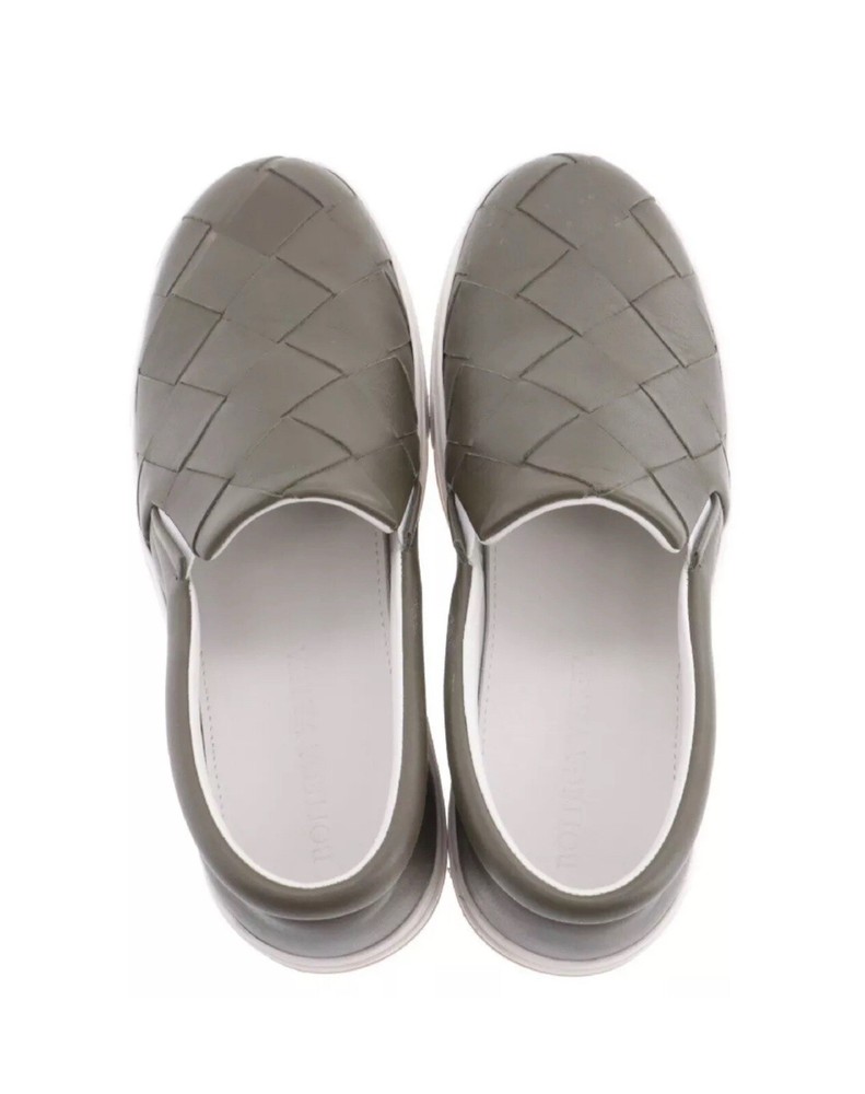 Elevate your casual style with these slip-on sneakers from Bottega Veneta. Crafted with high-quality leather, these sneakers feature a solid green/khaki color that complements any outfit. The slip-on closure ensures an effortless fit, making them perfect for a day out or a night out. These sneakers are designed for men and come in size 39, which is equivalent to a US shoe size 6. The Bottega Veneta brand is known for its premium quality, and these sneakers are no exception. Add them to your collection and step out in style. Comes with box, dust bags.