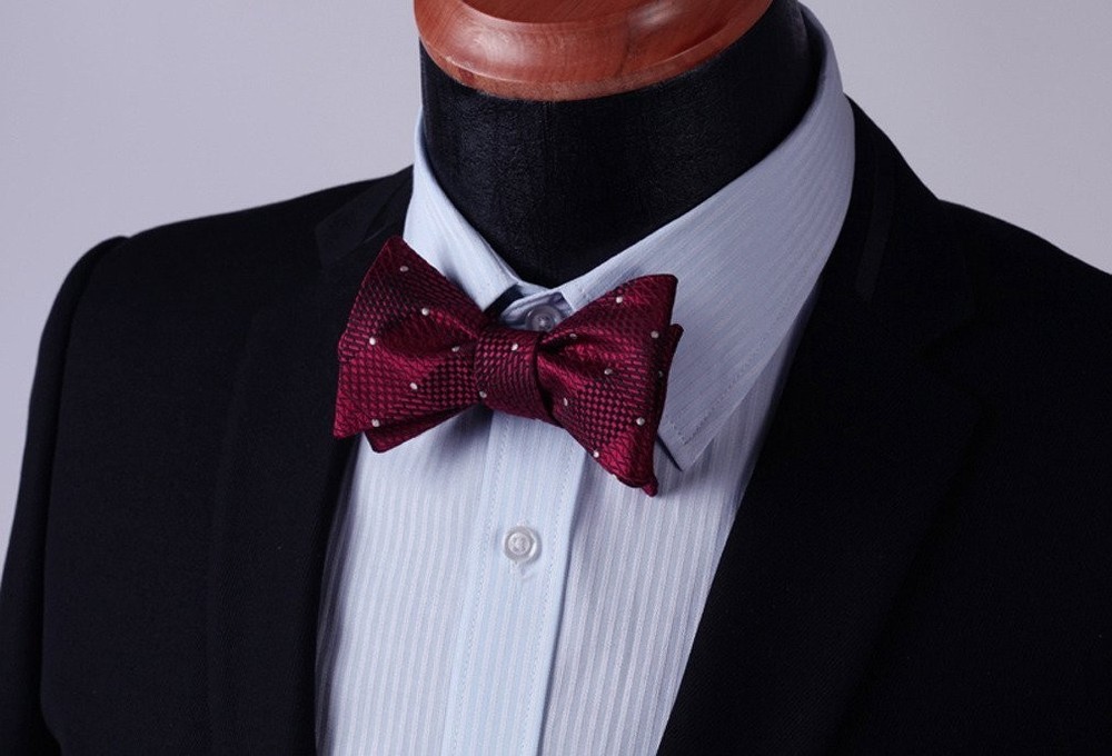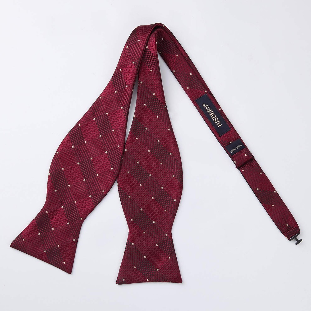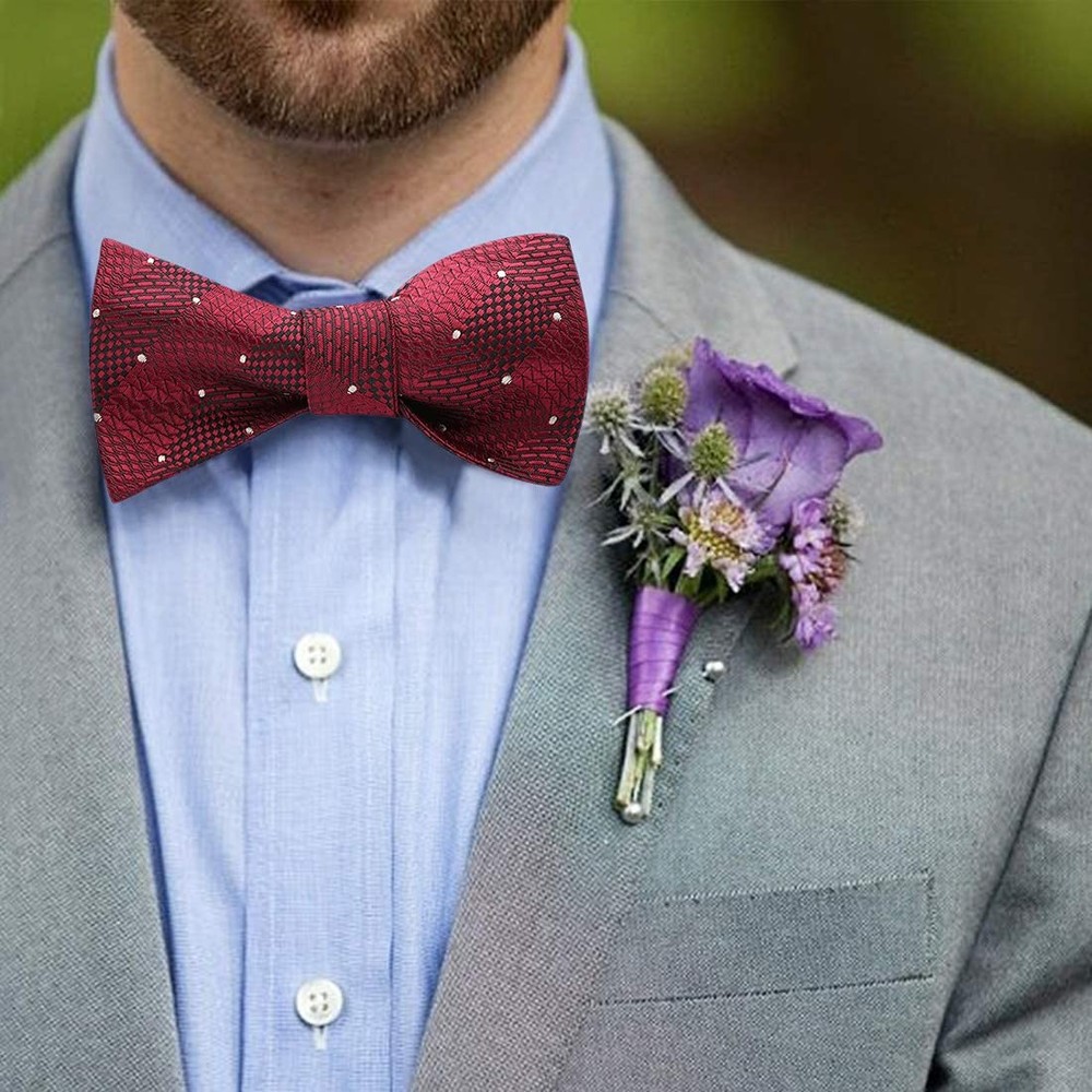 Mens Bowties Self Tie Wine Red Plaid Polka Dots Bow Tie and Pocket Square Wov...